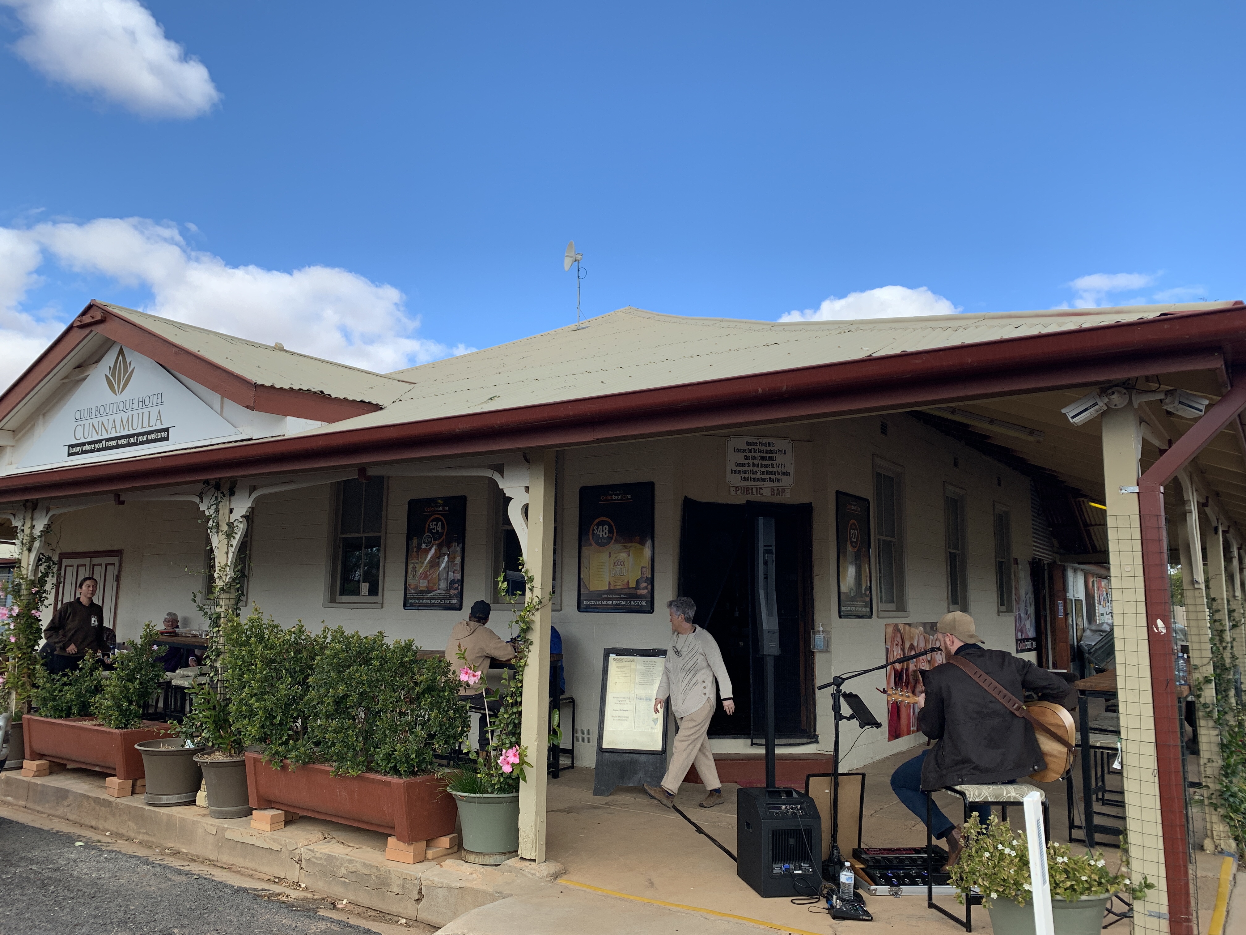 We left the Visitors Centre and went to the IGA to pick up supplies and by this time our stomachs were grumbling. We drove around and saw a pub that had a nice verandah and looked busy with diners. As an added bonus there was also live music playing. We find that the busiest places usually have the best food and we enjoyed a couple of delicious steak sandwiches accompanied by the live music provided by a young bloke named Ken Dustin at the Club Boutique Hotel.