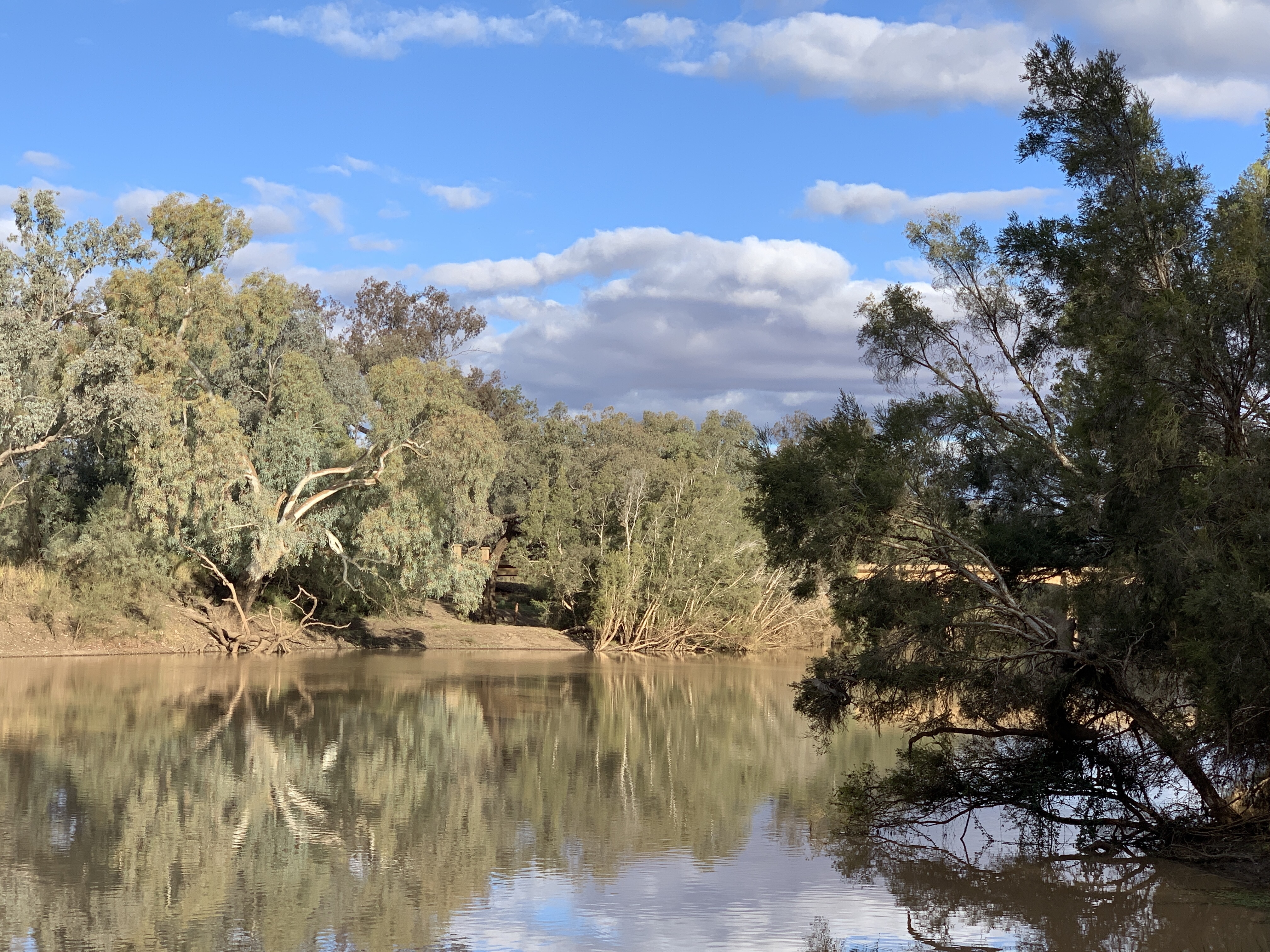However this didn’t really appeal to us and we went a little further west, crossed the bridge over the very full Warrego River and saw a track leading off to the right. It looked like it might lead to the riverside so we parked up and walked down the track to check it out. Sure enough there was a perfect spot, just big enough for one RV like ours or two small vans. It’s obviously a popular camp site as there is evidence of multiple fires along the riverbank. We quickly set up camp and got a fire going. I wrote this post while sitting outside next to the fire and feeling the serenity of camping with a water view. I think that’s the best campsite….one with a water view.