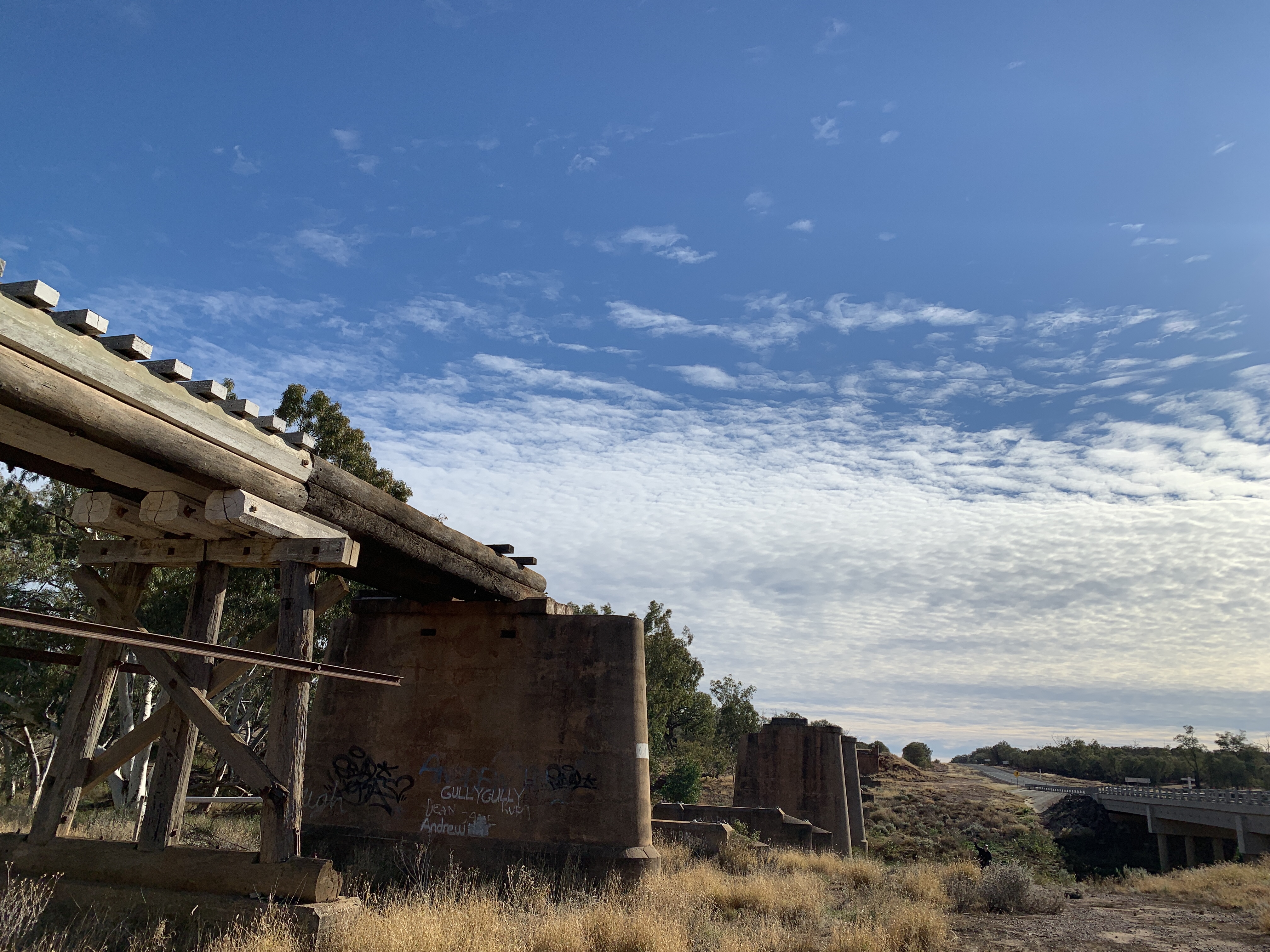 About 30km south of Charleville is the site of one of Australia’s most horrendous accidents at Angellala Bridge. Around 9.00pm on Friday 5 September 2014 a truck carrying 52.8 tonnes of ammonium nitrate crashed at the Angellala Bridge. The following explosion was measured on the Richter scale as a 2.1 seismic event. The explosion was so powerful that residents of Charleville 30km away thought there’d been an earthquake. Amazingly no lives were lost although the truck driver received burns to 35% of his body and others were injured. The railway bridge was completely destroyed and will probably never be rebuilt. On the side of the road there are signs and a pull over area for tourists to stop and read the story of the remarkable event.