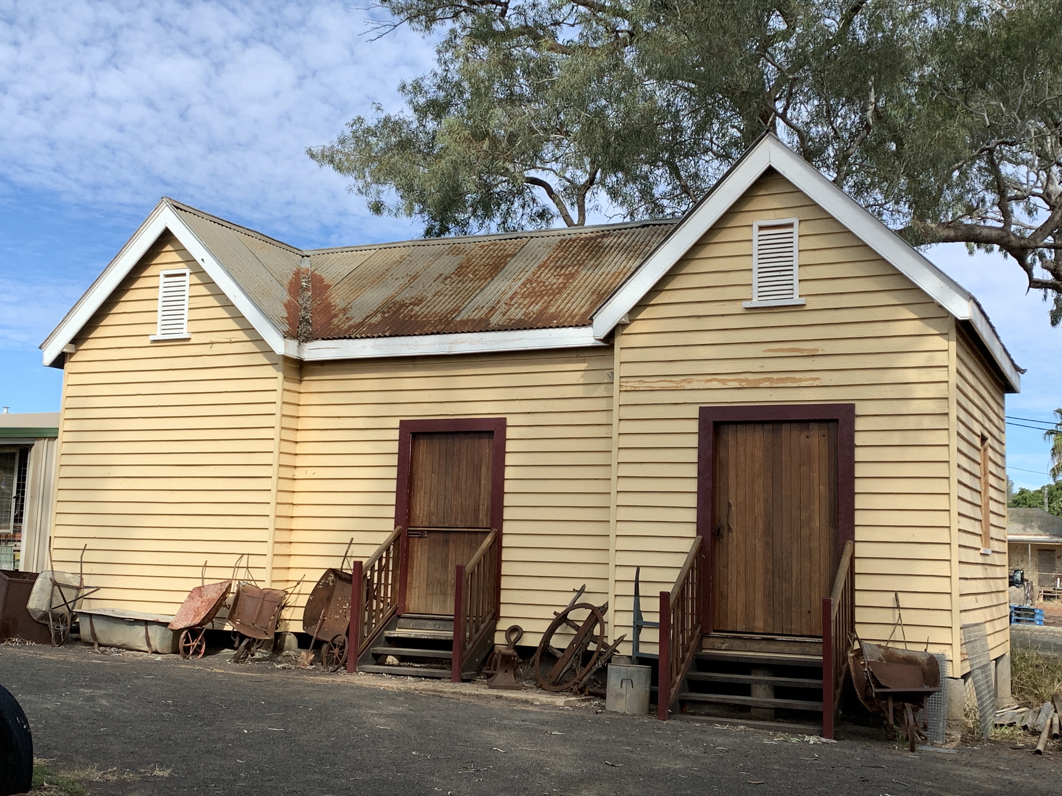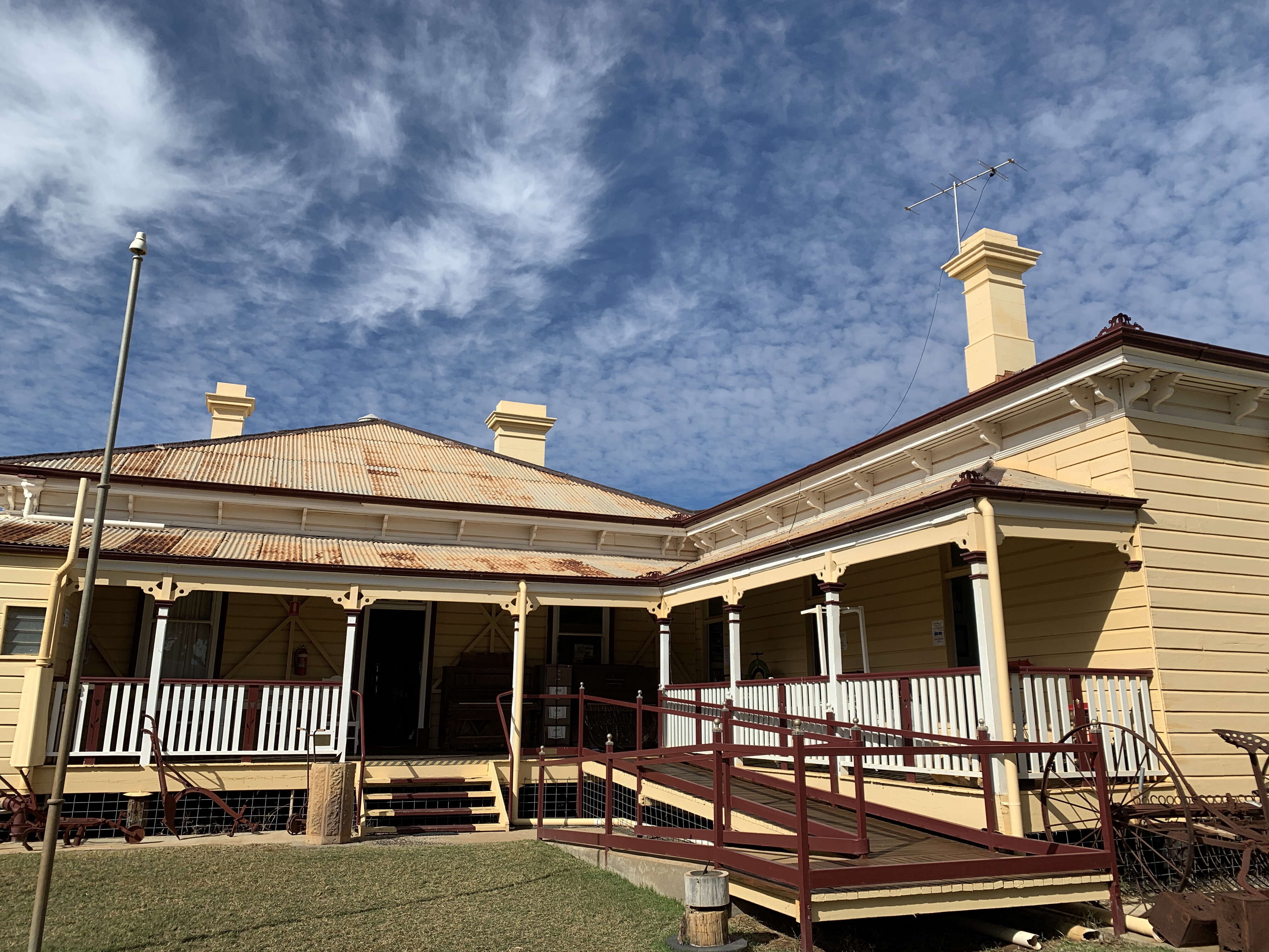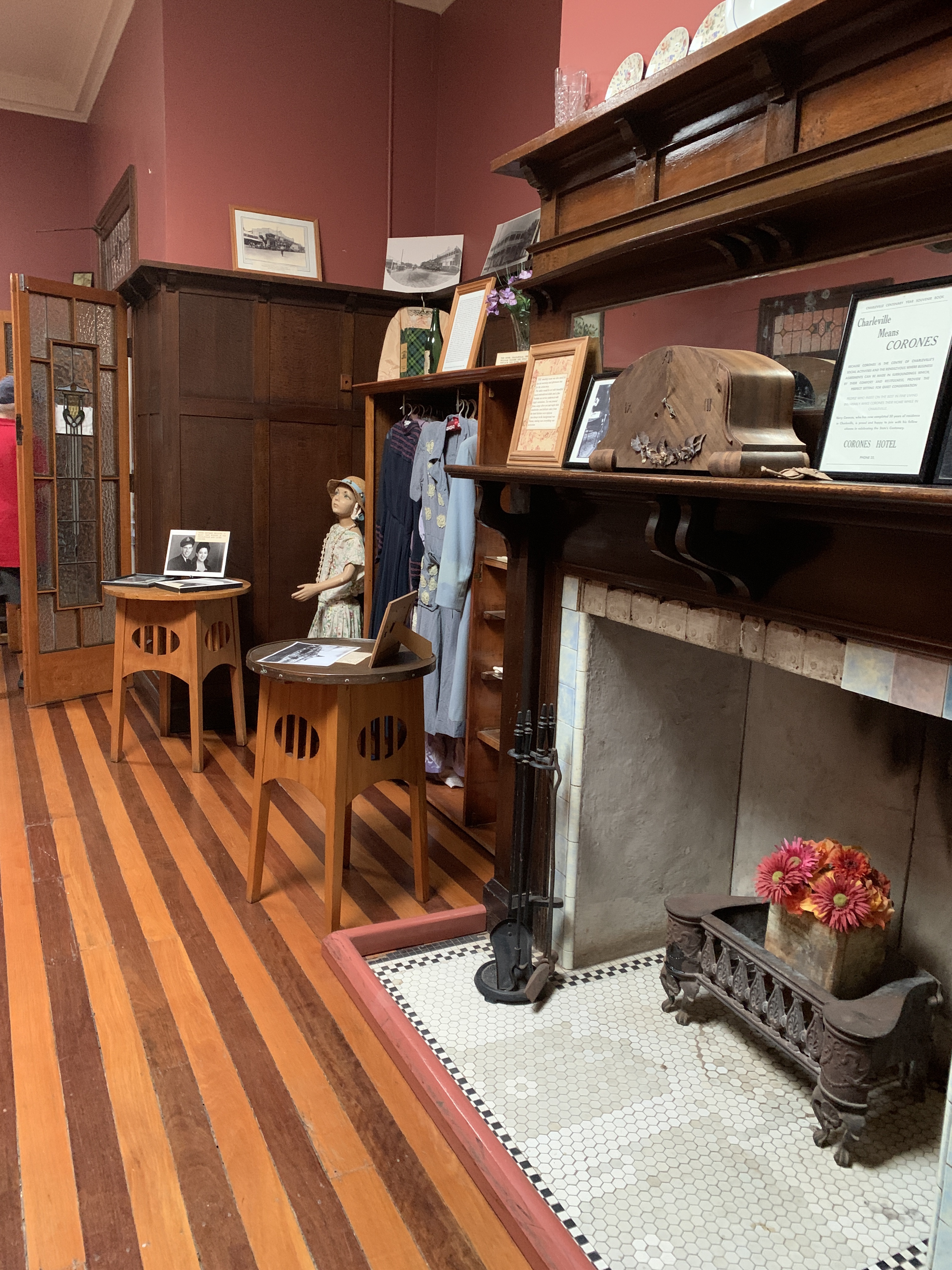 We visited the bakery for some fresh bread and across the road is the Historic House Museum. While Rich had some morning tea I visited the museum. The museum was built in 1889 as the Queensland National Bank with the bank at the front including a huge safe, and a residence for the bank manager and his family at the back. Across the yard at the rear were stables, tack rooms, and a buggy shelter. The property even had its own well. No expense was spared for the bank in the construction and the house features marble fireplaces, ceramic door knobs, cedar doorways and architraves and classic high ceilings. Today the house is home to a huge collection of local memorabilia including historical photographs, antique clothing, musical instruments, gramophones, and even the typewriter used by Rev. John Flynn (co-founder of the Royal Flying Doctor Service). Out the back are some fine examples of horse drawn vehicles and motor vehicles. If you love old stuff and history then this is a must do stop in Charleville.