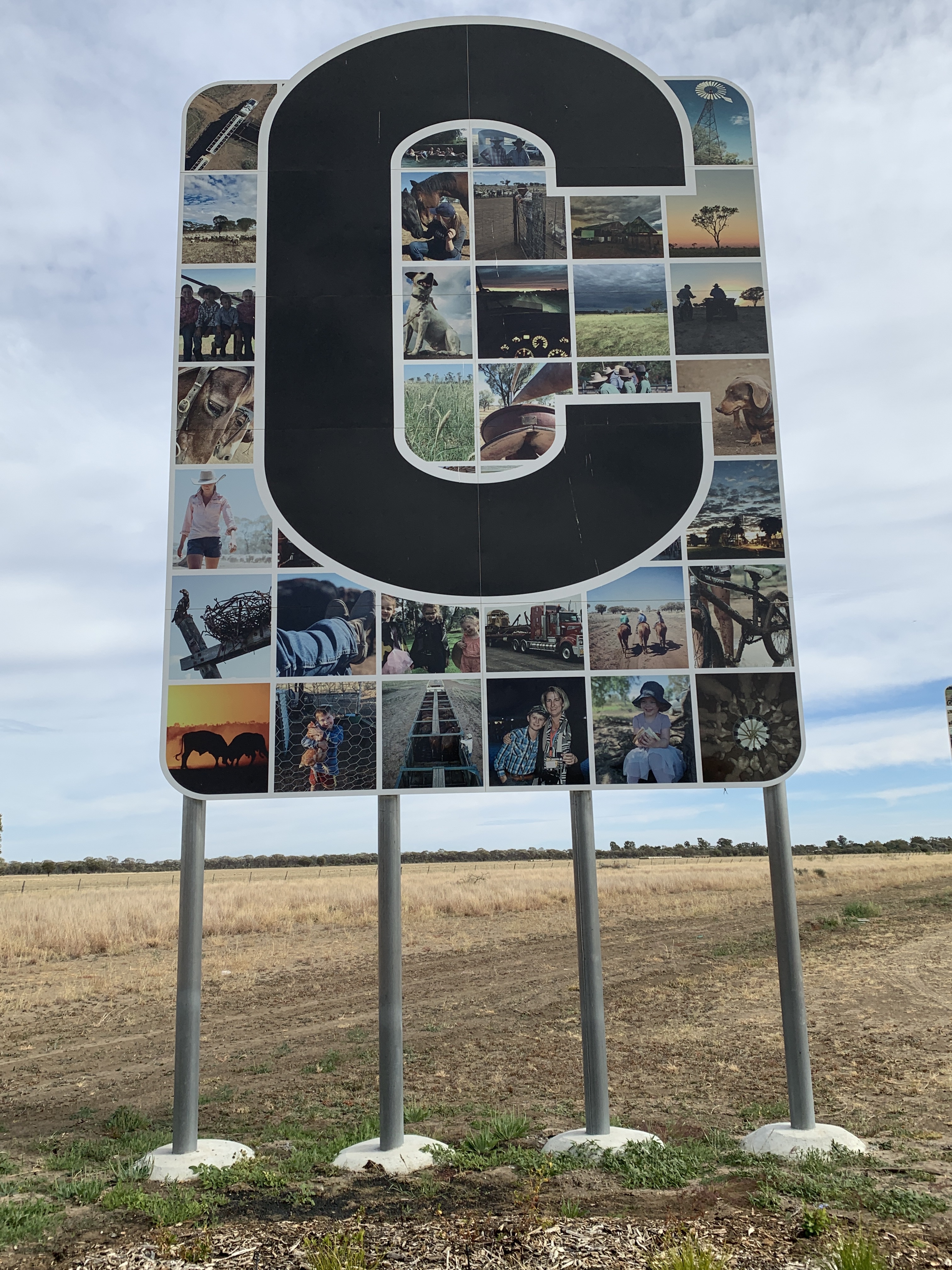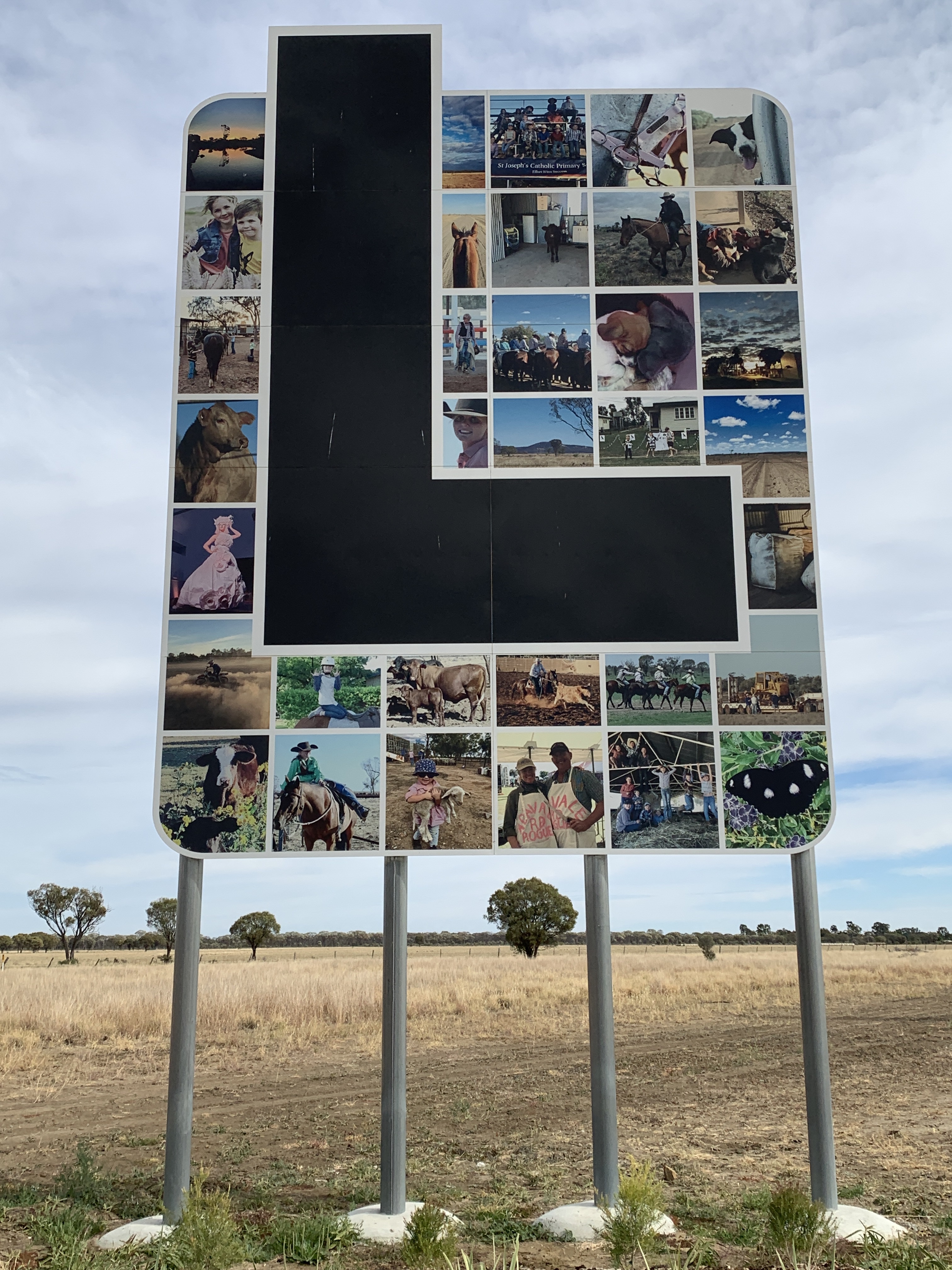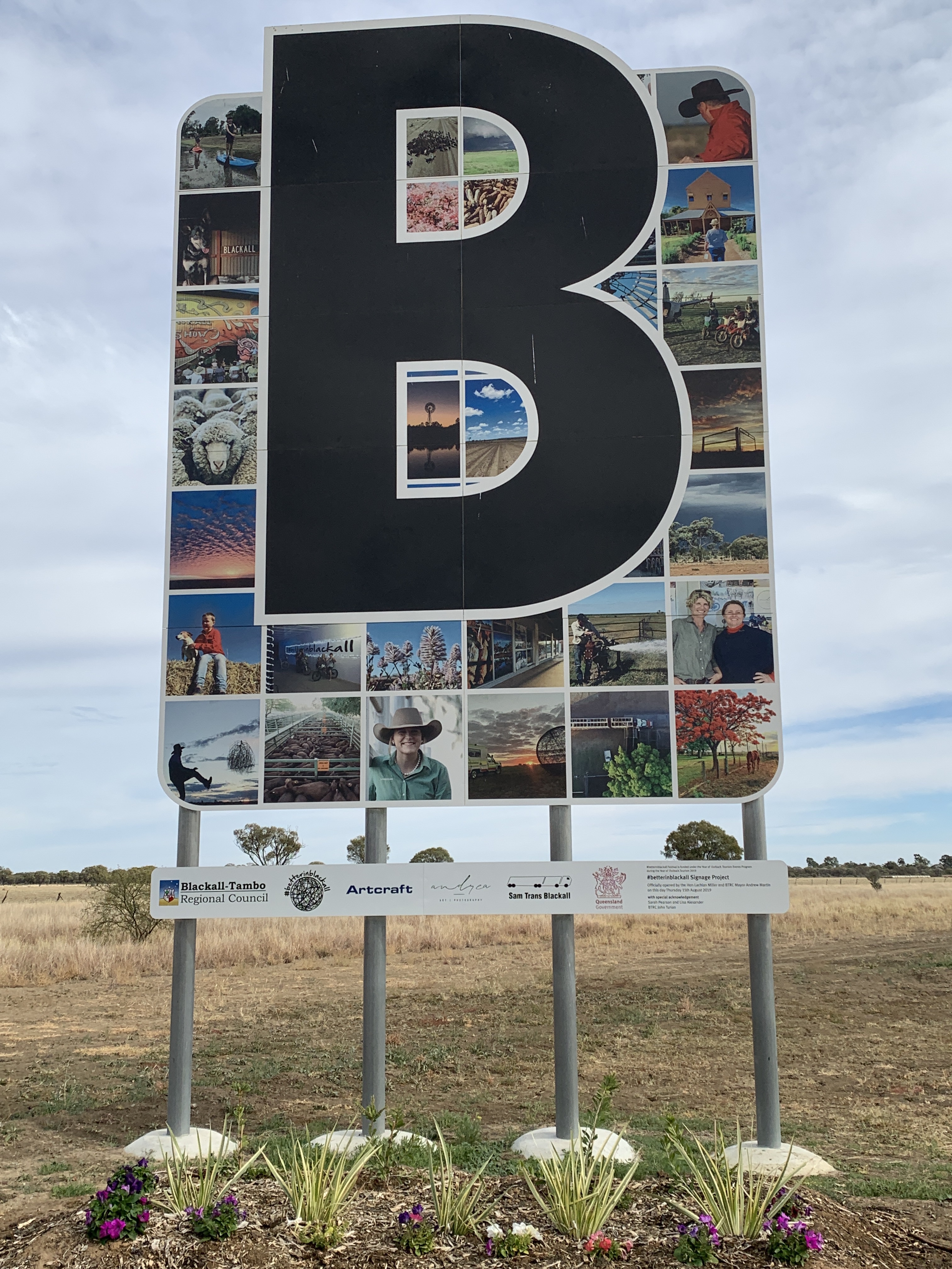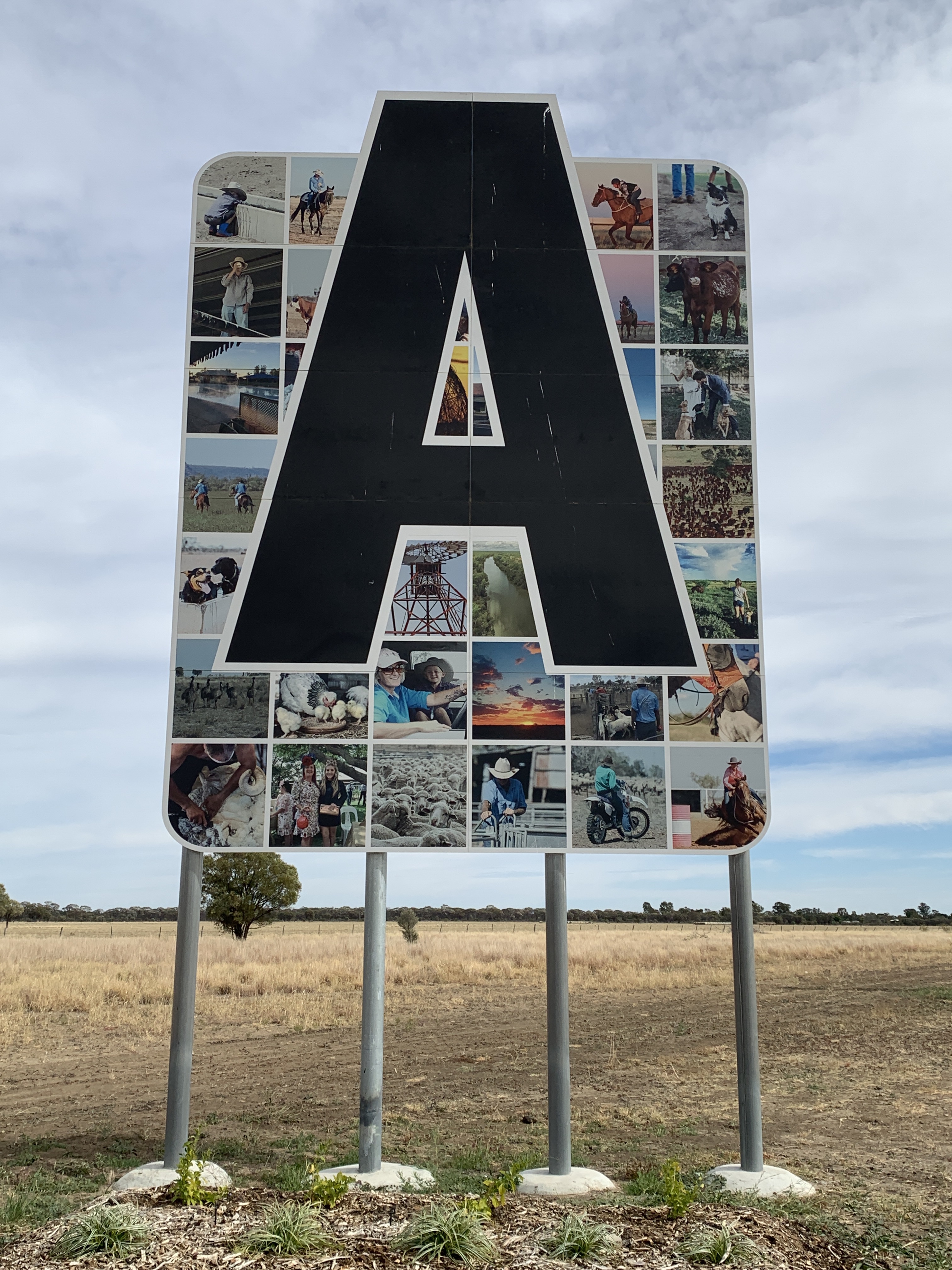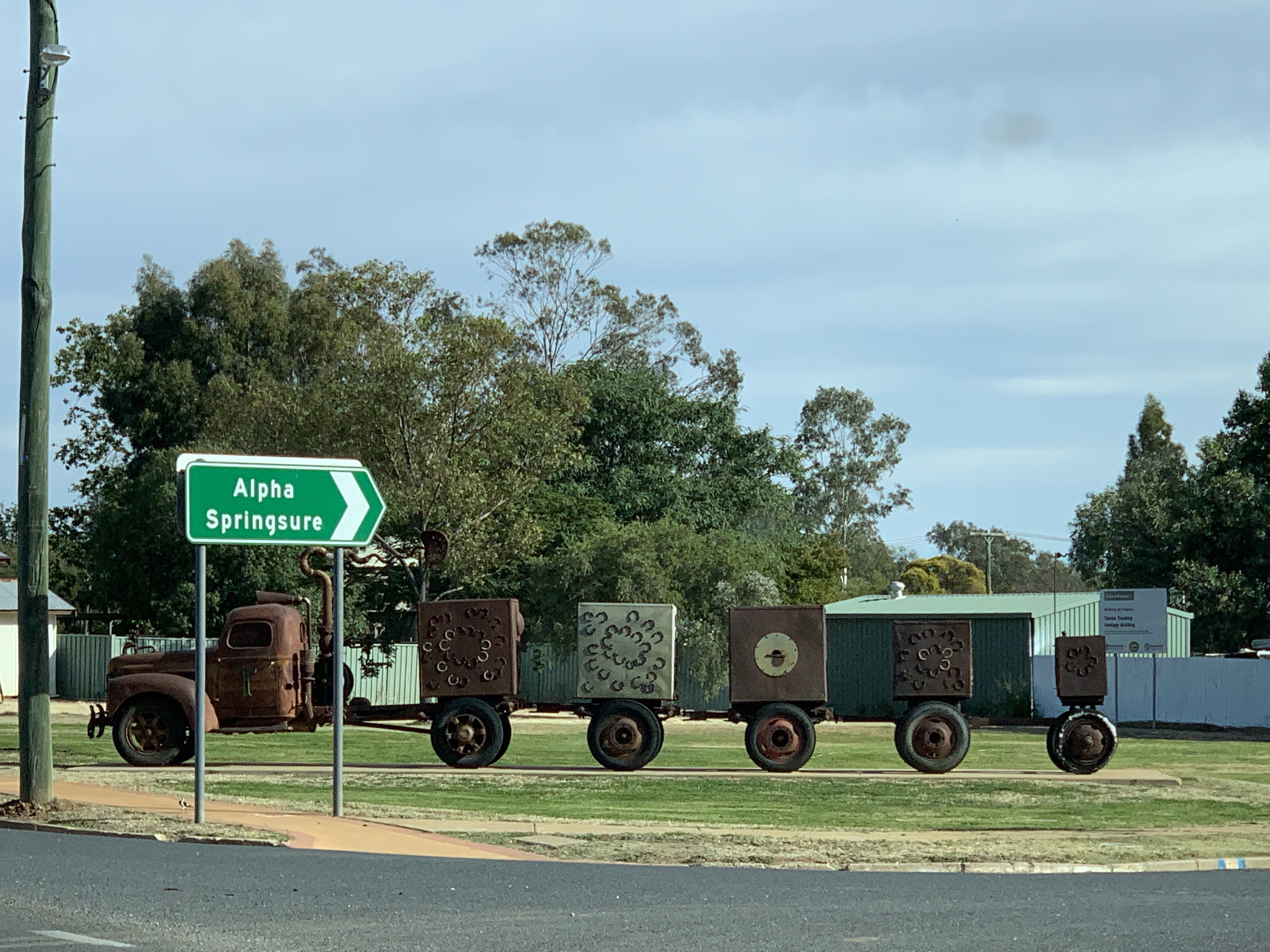 We arrived in Blackall around 11.30am and had to stop and take photos of their fabulous signs at the entry to the town. The town name is spelt out in very large single black letters on a background of images. The images include local people, buildings, local activities and flora and fauna of the area. They are fabulous!