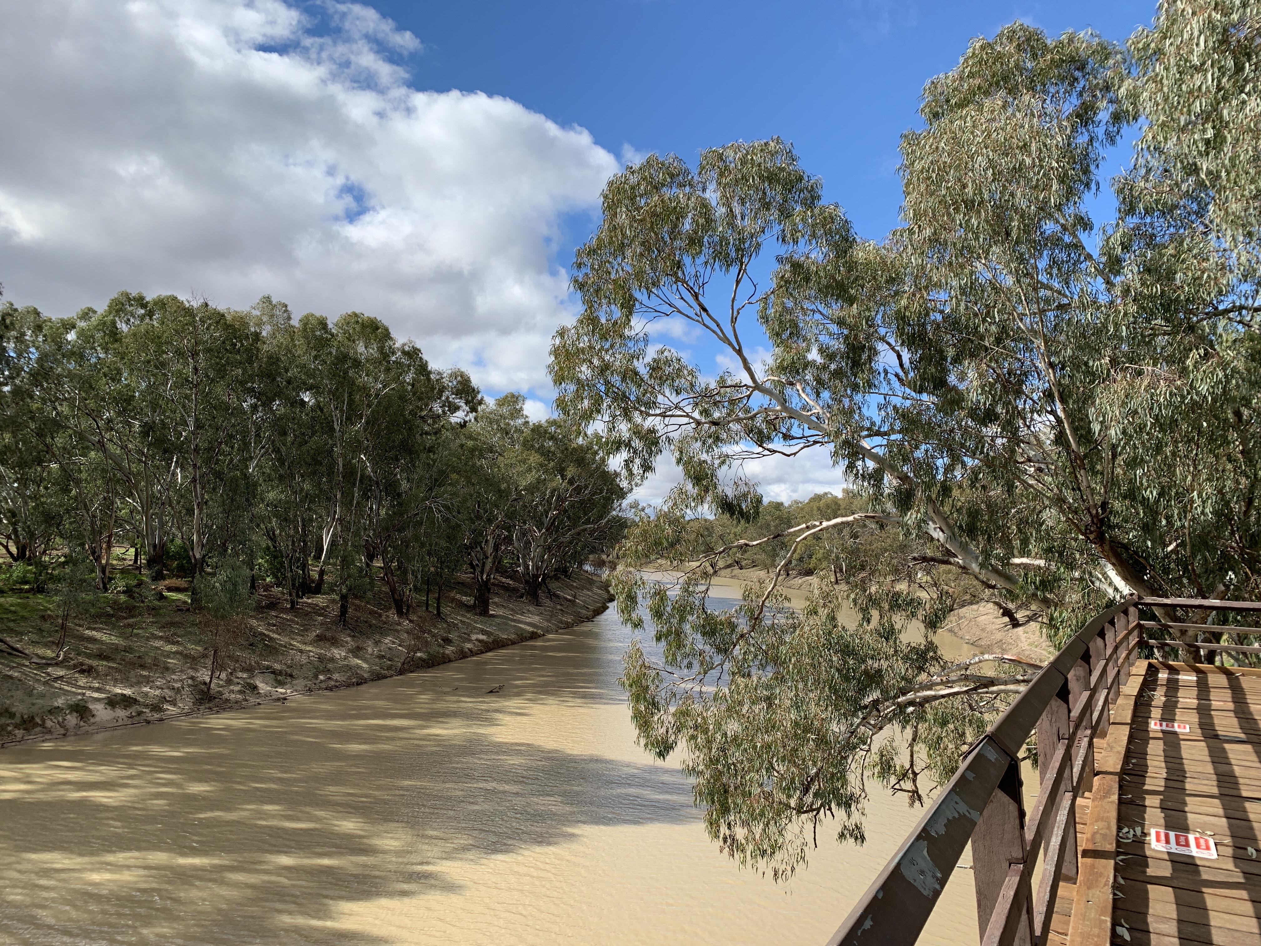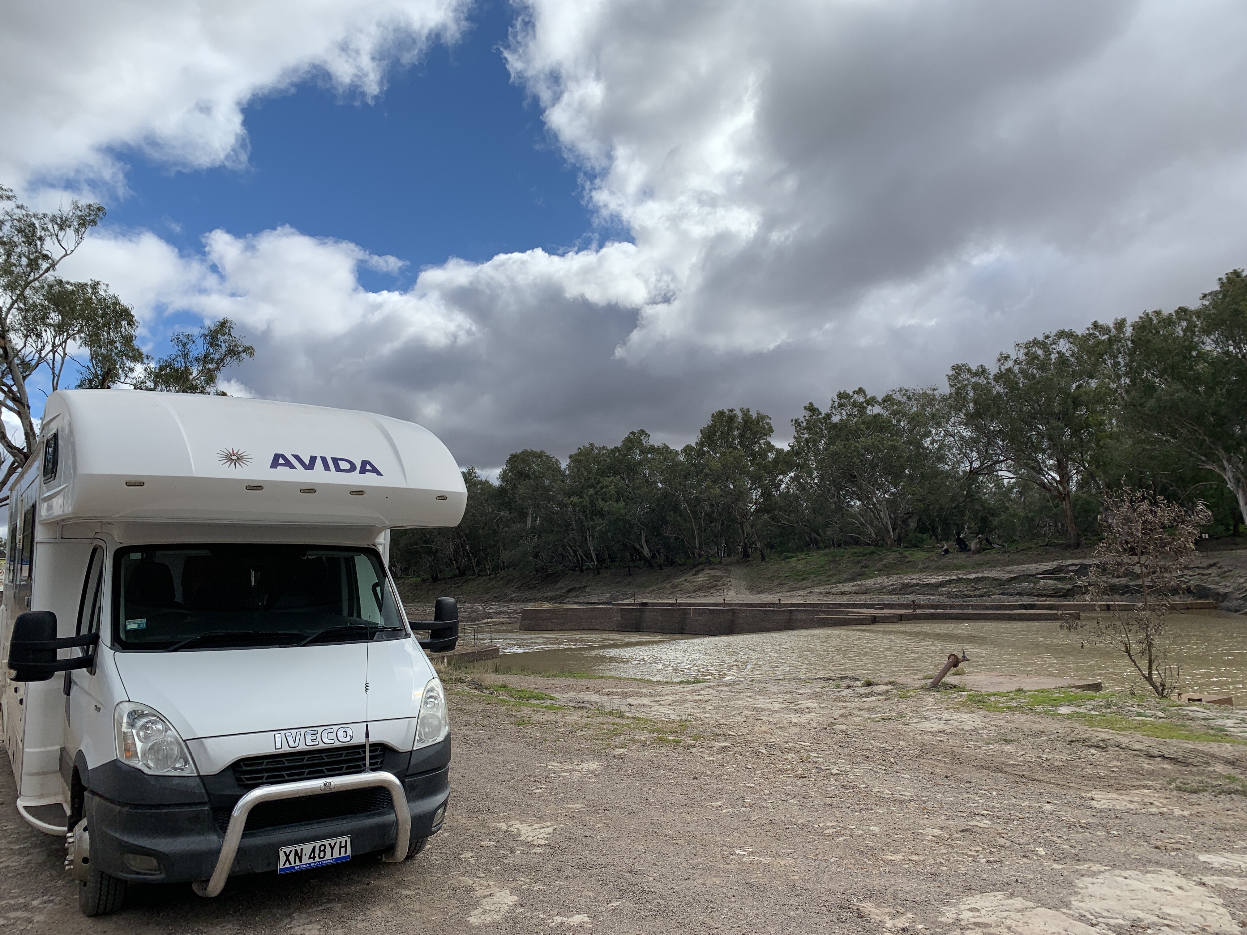 Our next stop was the Historic Lock & Weir. This is out of town on the western side and the road is only tar for a little way and then becomes a gravel road for the last couple of kilometres. The road was awful. It was very corrugated and we did wonder for a bit if it was worth shaking our motorhome that much. We went very slowly and finally made it to the weir. This lock and weir was the first one ever built on the Murray/Darling Rivers and was built in 1897. The lock measures 59.5 metres between the gates and is 11m wide. The lock is no longer usable but the weir still functions as it did when built. We found some old pipes that were obviously once used to pump water from the river.