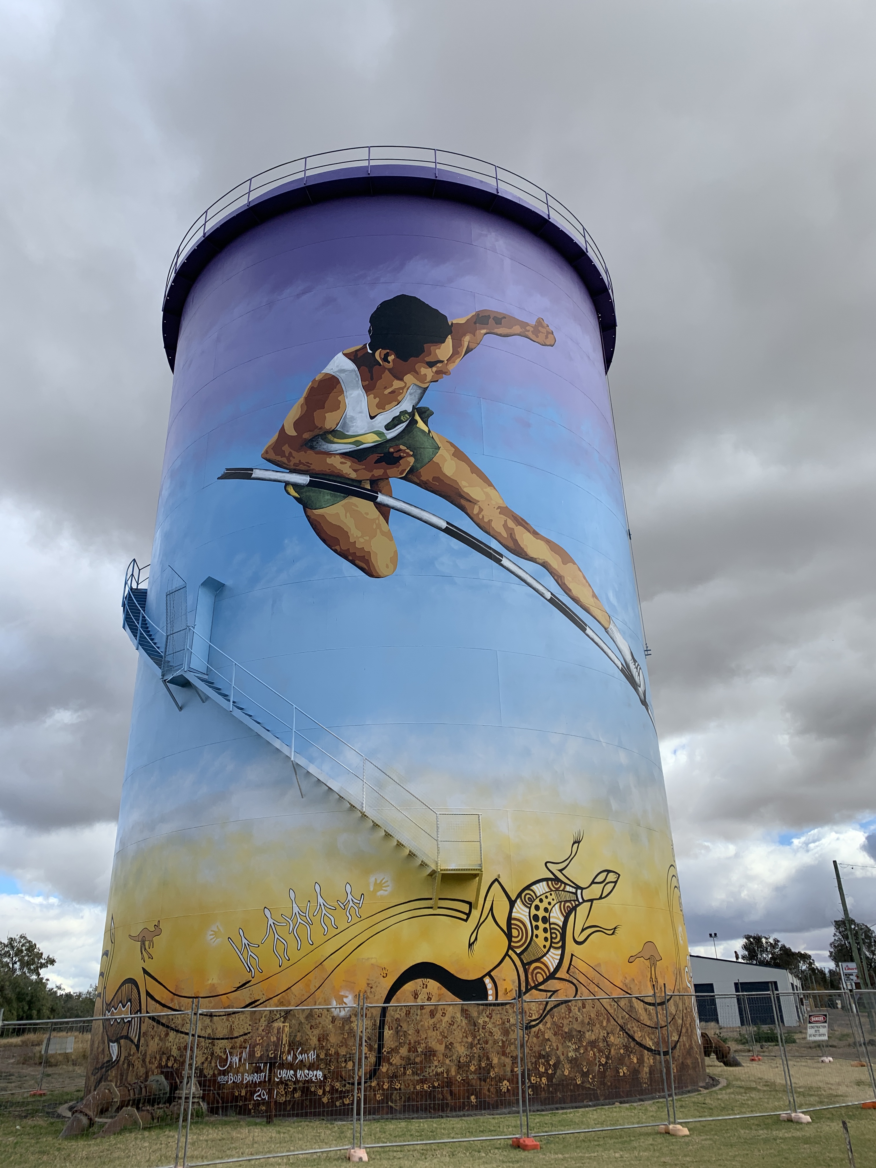 Back into town and our next stop was the painted water tower. The tower shows the image of one of Bourke’s most famous residents, Percy Hobson. The park that the water tower sits beside is also named after Percy and there is a plaque in the park commemorating his achievements.