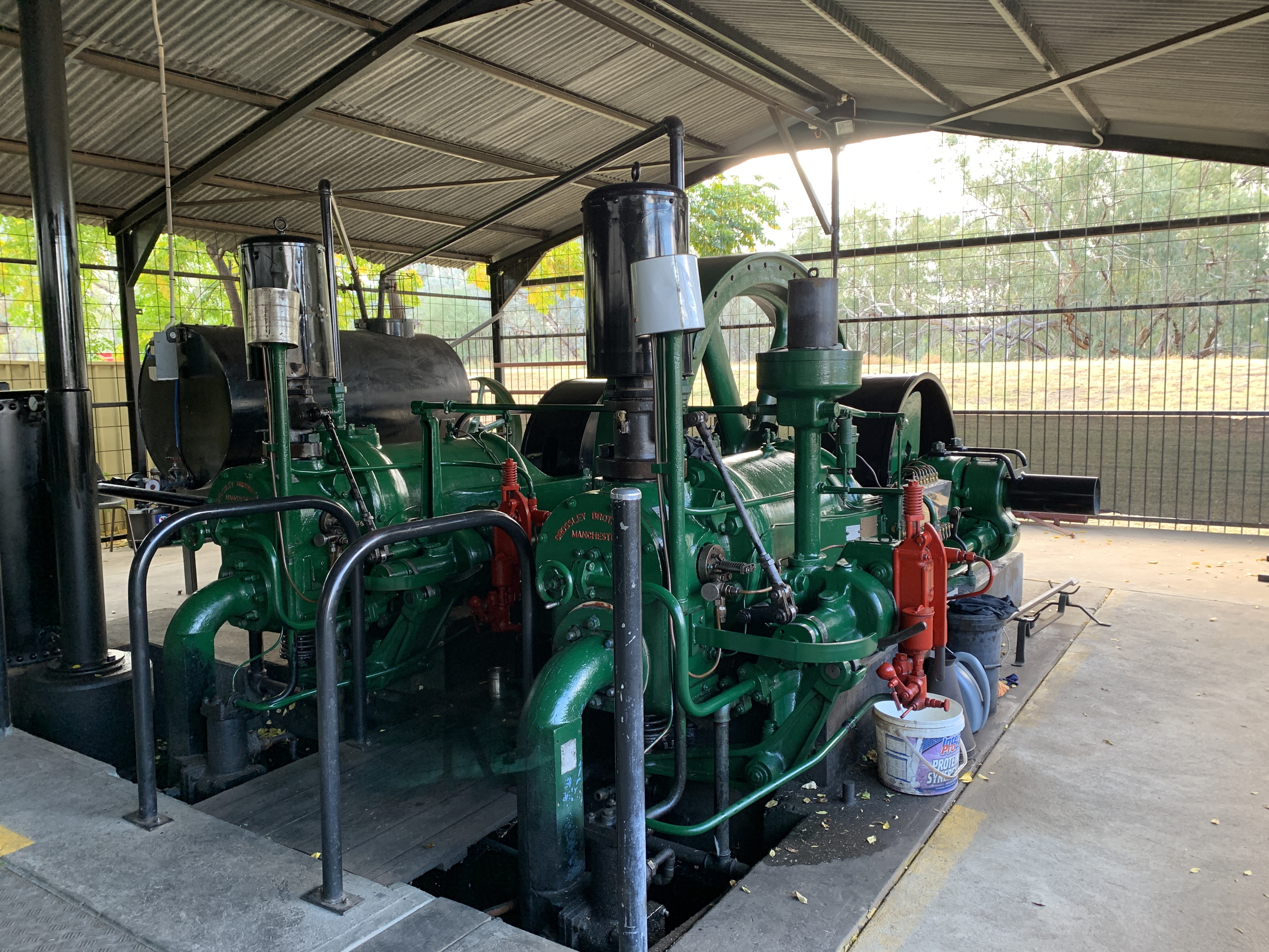 In a shed near the river is the Crossley Engine built in 1923 in Manchester, England, that has been fully restored by the Bourke Shire Council. It is an amazing piece of engineering and these engines were used for such things as electricity generation, water pumping and factory machine operation. This particular engine was used in the Sydney Power House from 1923 to 1938 to generate power for Sydney. It was later used at a Butter Factory in Coffs Harbour then at a Narromine property from 1949 to 1964 to pump water for irrigation.