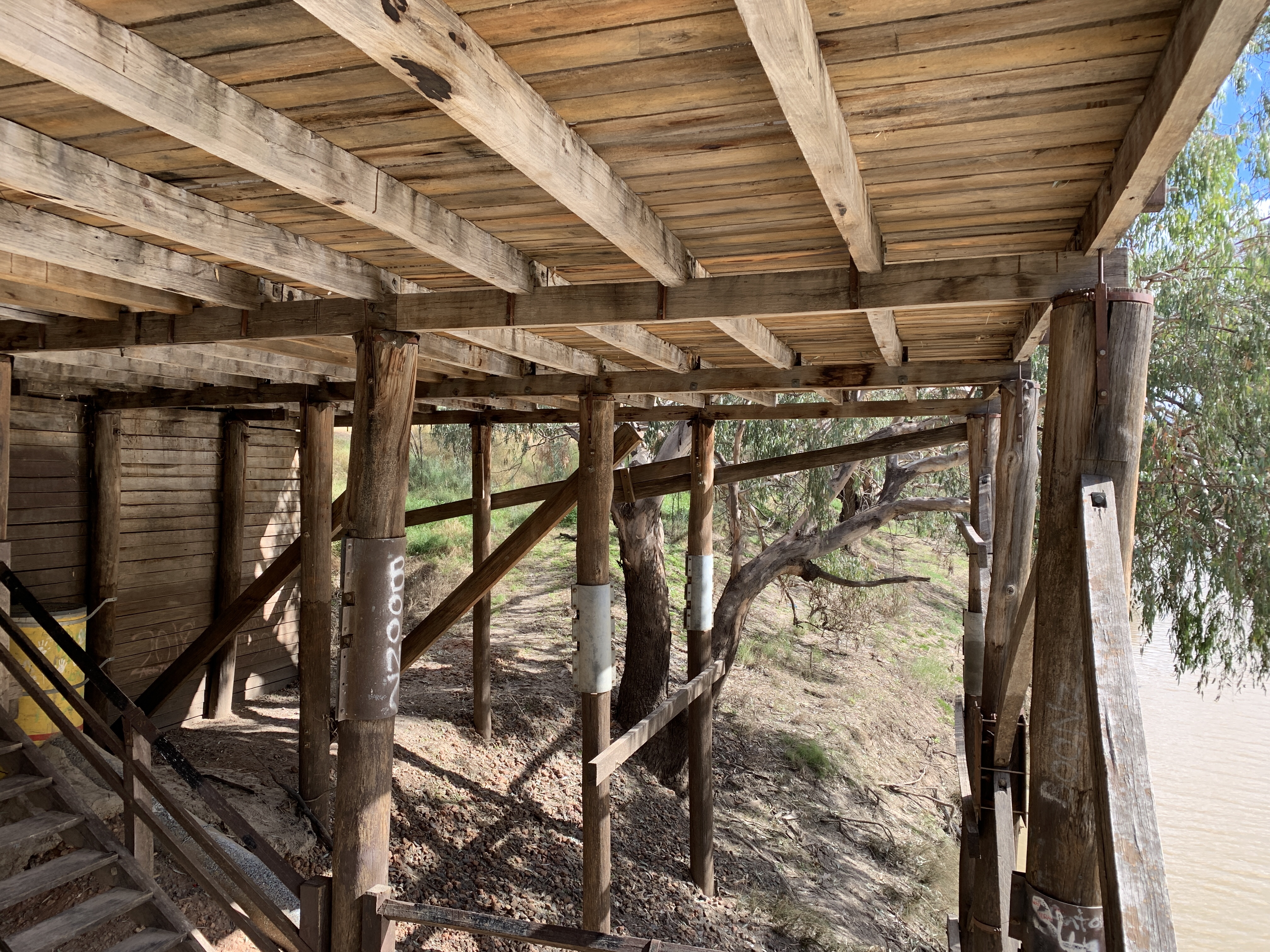 Part of the historic wharf has been rebuilt and restored on the river bank. It is constructed from River Red Gum and has a staircase that leads to different levels so you could access your boat no matter what the river level was. The wharf is a fraction of what it was in years gone by. At one time the wharf had three steam driven cranes that would load over 40,000 bales of wool each year onto the barges and paddle steamers to be taken down river and exported all over the world. Bourke was once a very busy river port and saw boats of all sizes