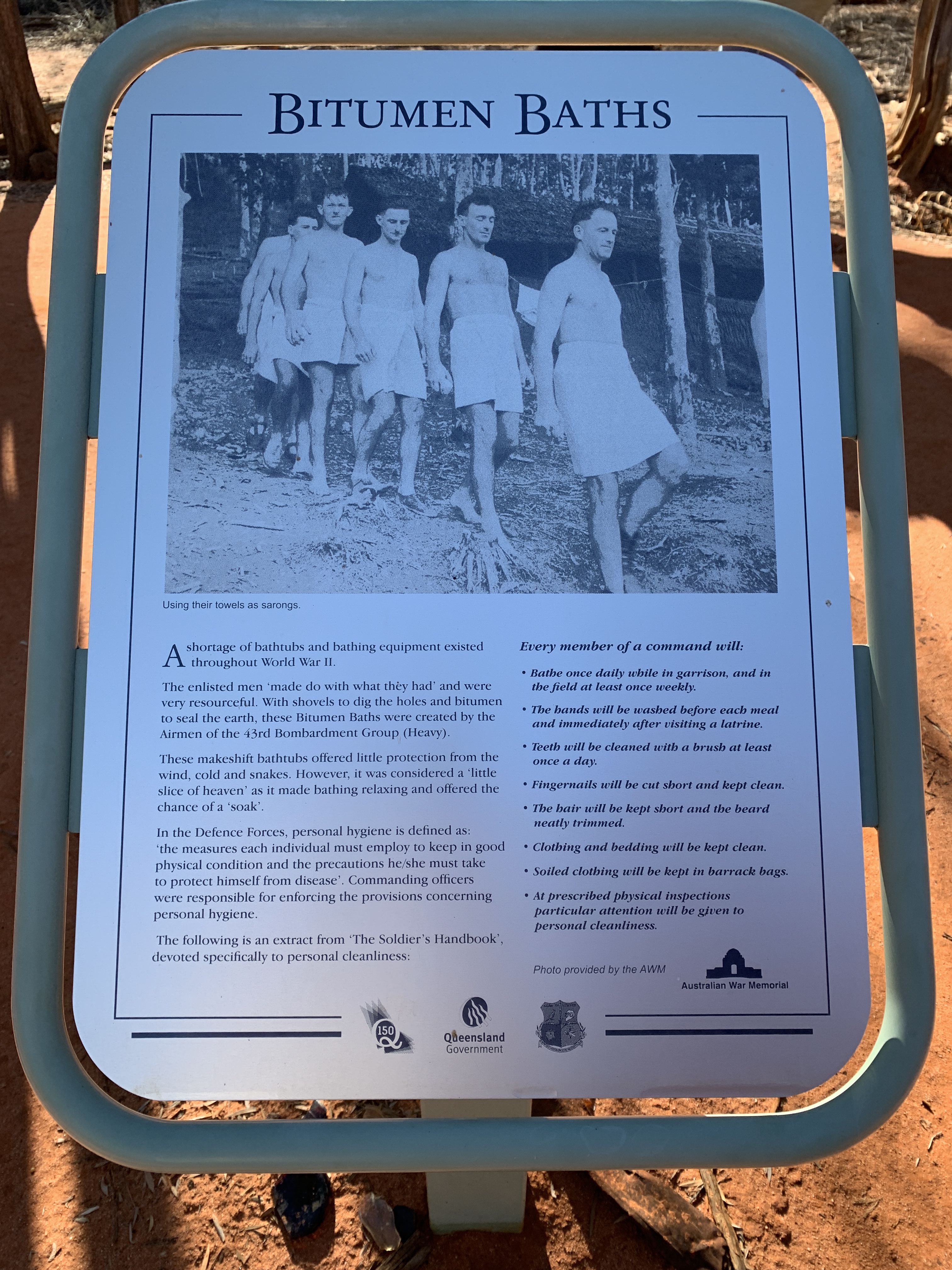 I had booked online for a tagalong tour of the Secret WWII Base and we had to be out at the Airport before the tour started at 9am. We had enjoyed our first stay in a CMCA RV Park and will definitely stay in one of those again. Such a bargain…a flat spot to park, a dump point, rubbish bin, potable water and happy hour around a campfire. All for $6 per night for two. If you are not members of the CMCA is costs more so why wouldn’t you become a member? It’s only $44 per year.