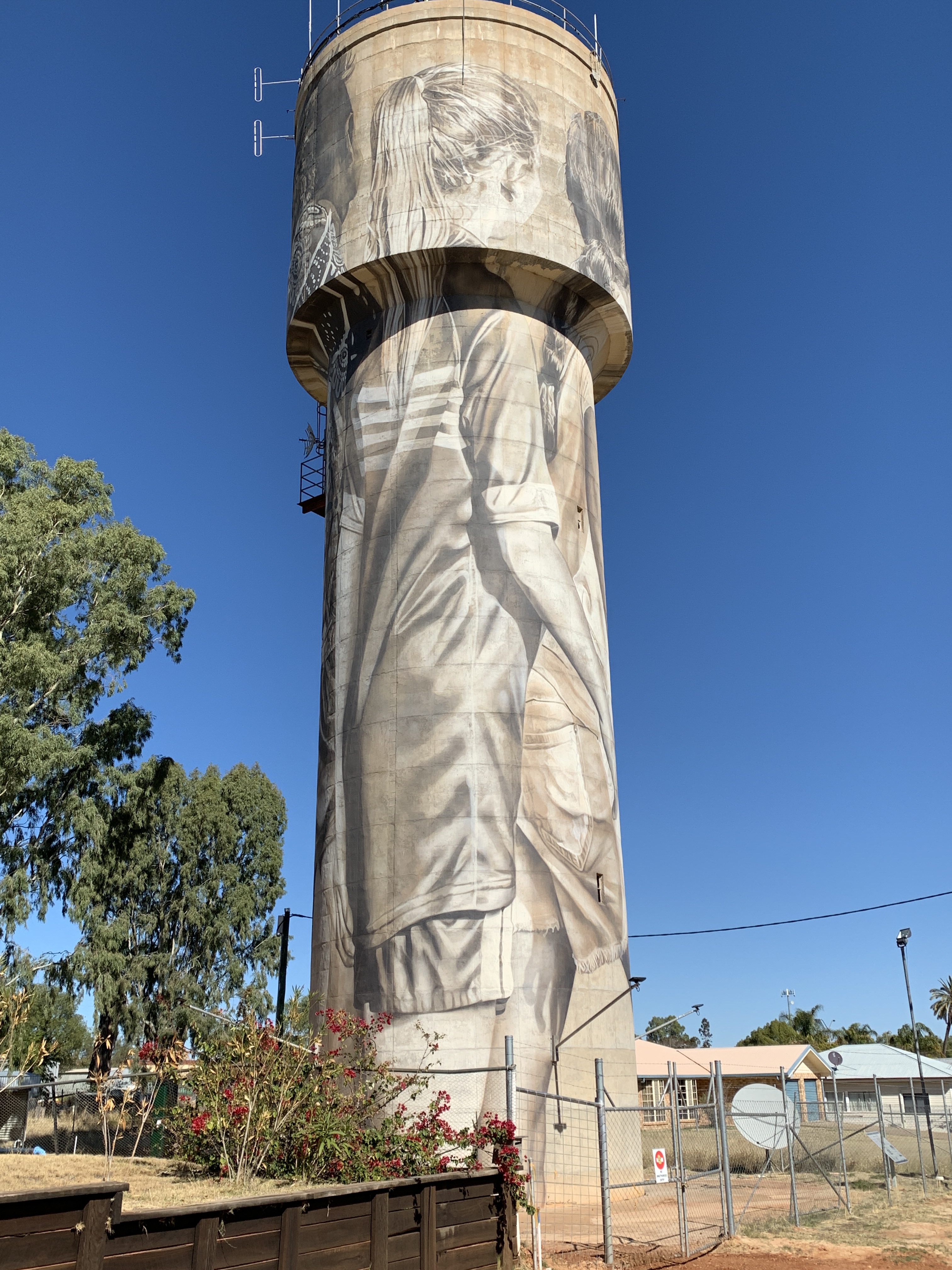 We did a little detour through the tiny town of Augathella to view their painted water tower and then continued on.