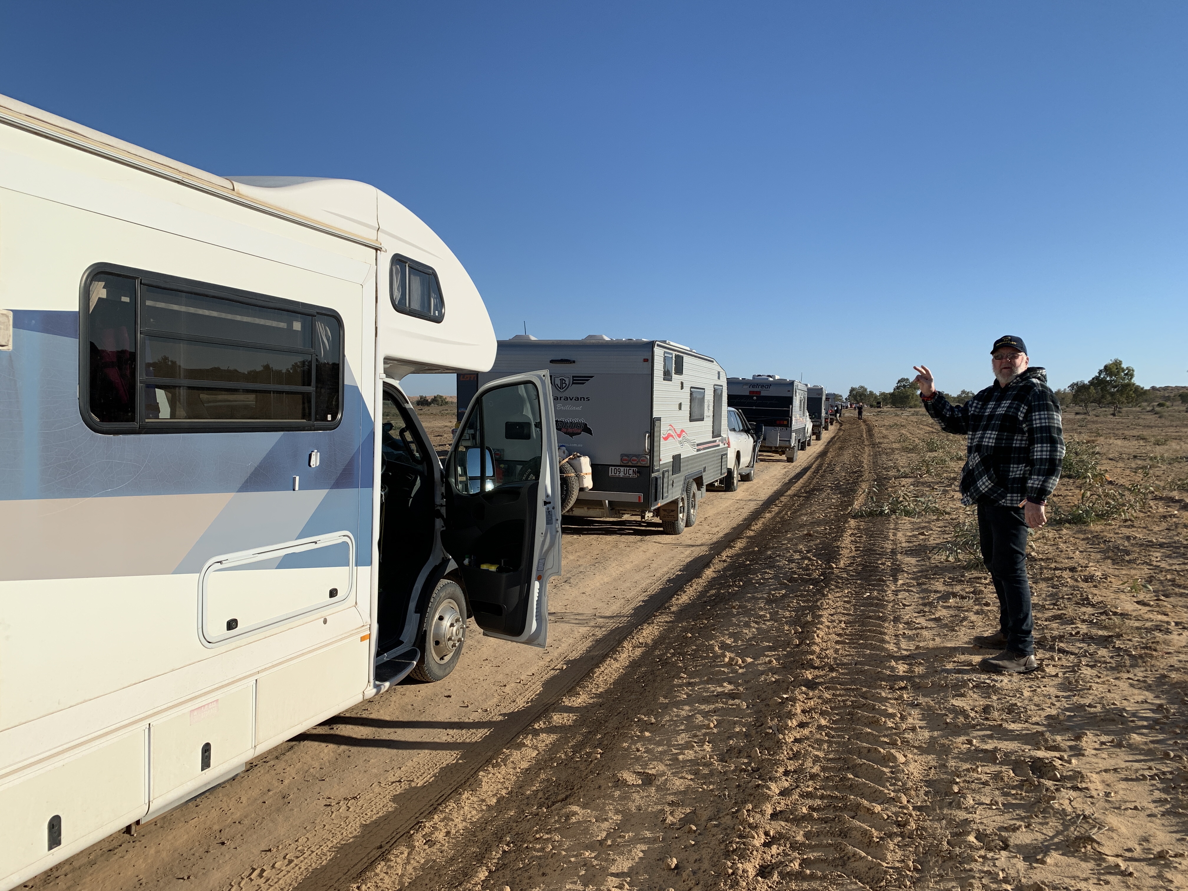 Our ‘Makin’ Memories’ group of 6 caravans and one motorhome set off from Birdsville on the morning of Sunday 4 July 2021. I think everyone was feeling some excitement as, this was the day, the culmination of 2 years of planning. There was sadness in 2020 when the event was cancelled due to the Covid-19 pandemic and a great sense of relief to hear that the same artists would return for 2021 and our tickets would carry over.