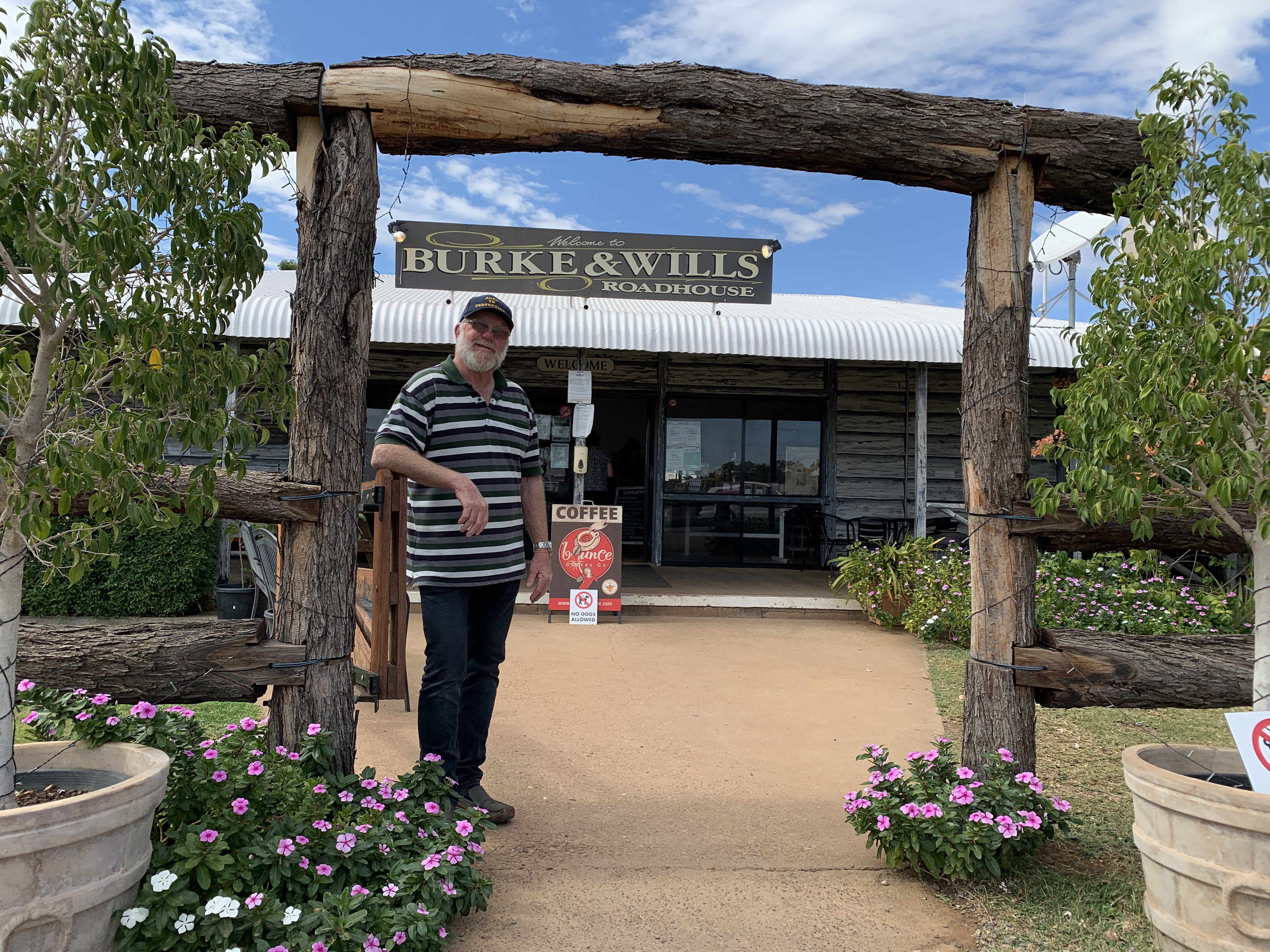 We had a quick look at the famous roadhouse that looks like it is a transportable building clad to look old. They did have lovely gardens out the front with green grass and flowering bougainvillea. The green grass was an unusual sight in The Outback. The caravan park alongside the roadhouse looked pretty full and I imagine it would be full by nightfall.