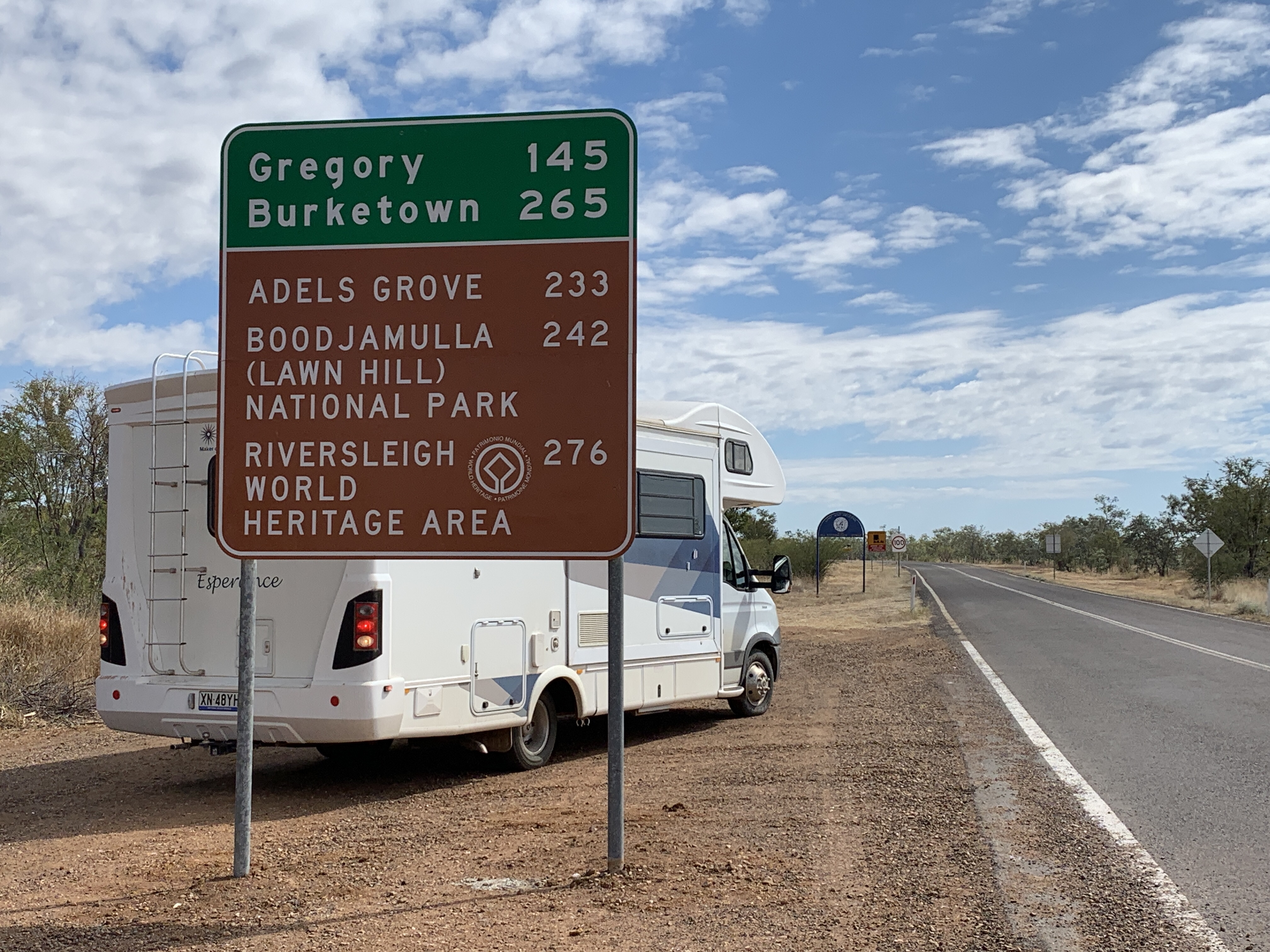 Back in the motorhome we took a left turn onto the Burketown Road. It was 145km to Gregory Downs, our destination for the day. The countryside had changed again to large grassland paddocks. It looked like sandy soil and not as many rocks. We were pleasantly surprised by the road. We were expecting another single lane outback road however we found a wide two lane road most of the way to Gregory. There were a few short sections of single lane but mostly it was a really good wide road with little traffic.