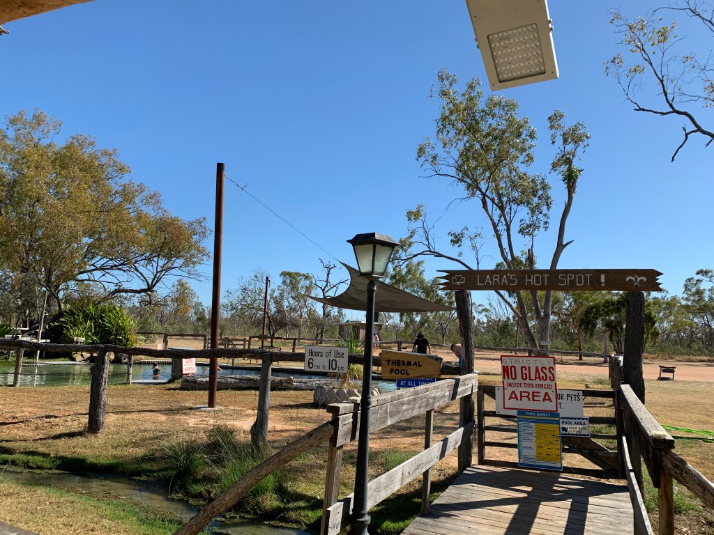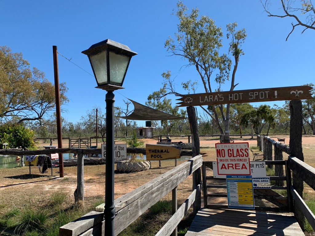 Sign at the main roadRoad into LaraFire pit & wood trolleyKayaks for guest useHomestead gatesOn the way back from a Homestead TourBore drain into the wetlandsThe thermal poolGorgeous sunsetsCamp kitchenCamp kitchenLara Yacht Club