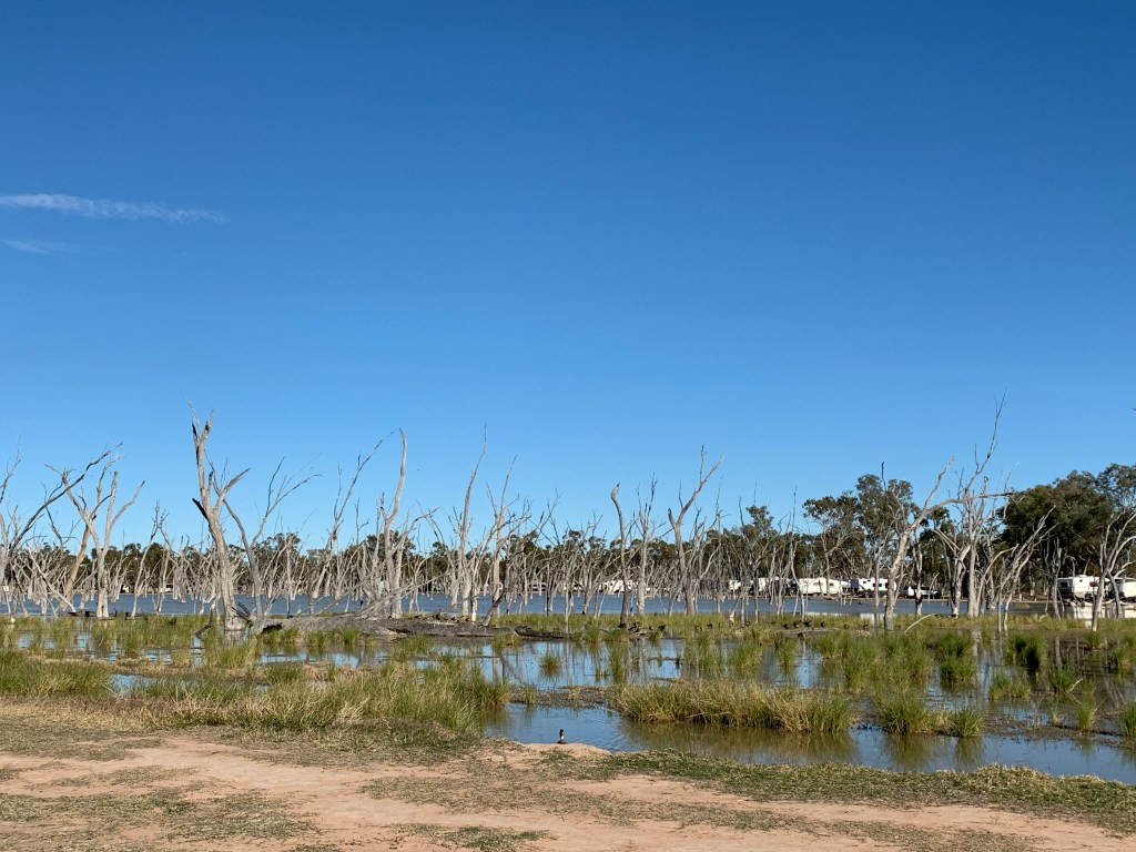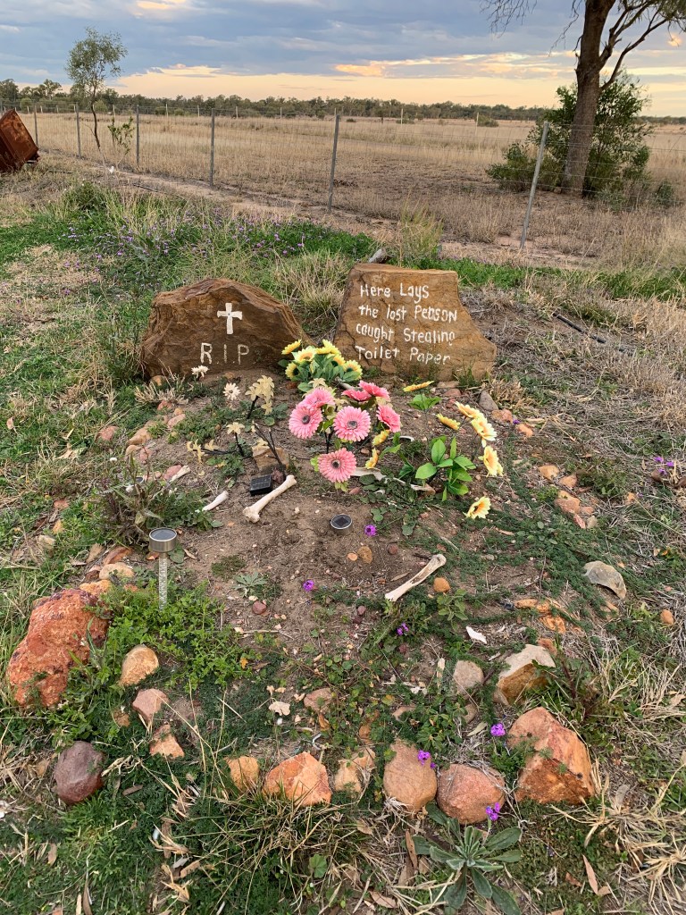 As we drove further south on the Newell Highway we reflected on the last 8 amazing weeks. We had left our home in Griffith, NSW on 16th June and traveled northwards though the NSW outback towns of Hillston, Cobar and Bourke. We had a tyre valve fixed and visited friends in Cobar. In Bourke we visited the Back O’ Bourke Exhibition, Fred Hollows Grave at the historic Bourke Cemetery, the historic weir, the wharf precinct, and the Back O’Bourke Gallery.