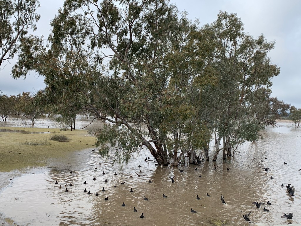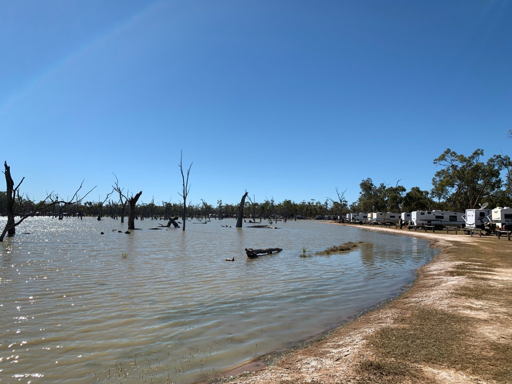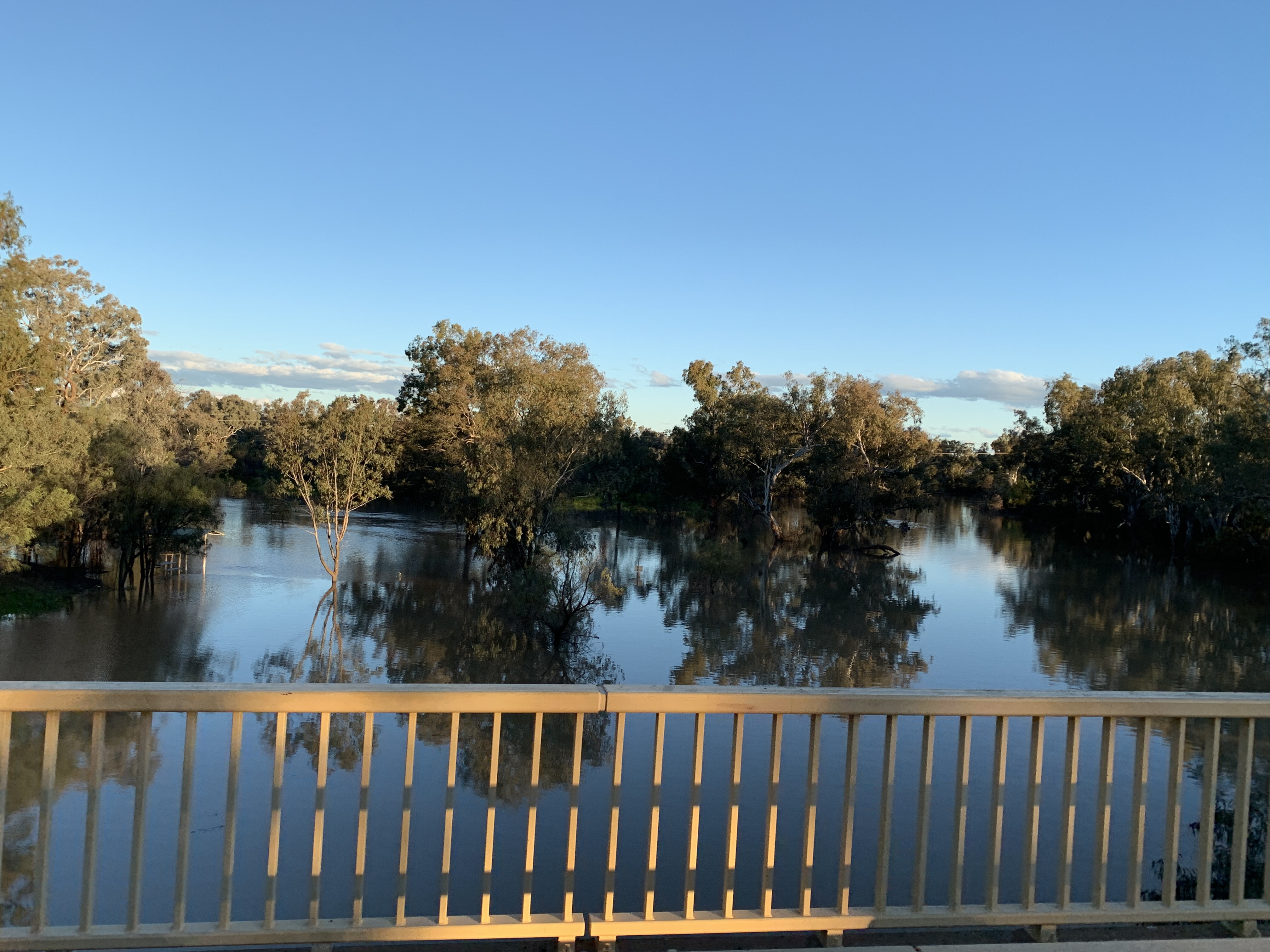 Between Lightning Ridge and Walgett we saw lots of emus. We hadn’t seen emus for a very long time. We also saw a couple of wild pigs. As we approached Walgett we were surprised to see the billabongs overflowing and then we crossed the Namoi River and it is in flood. There must have been some serious rain in the area lately.