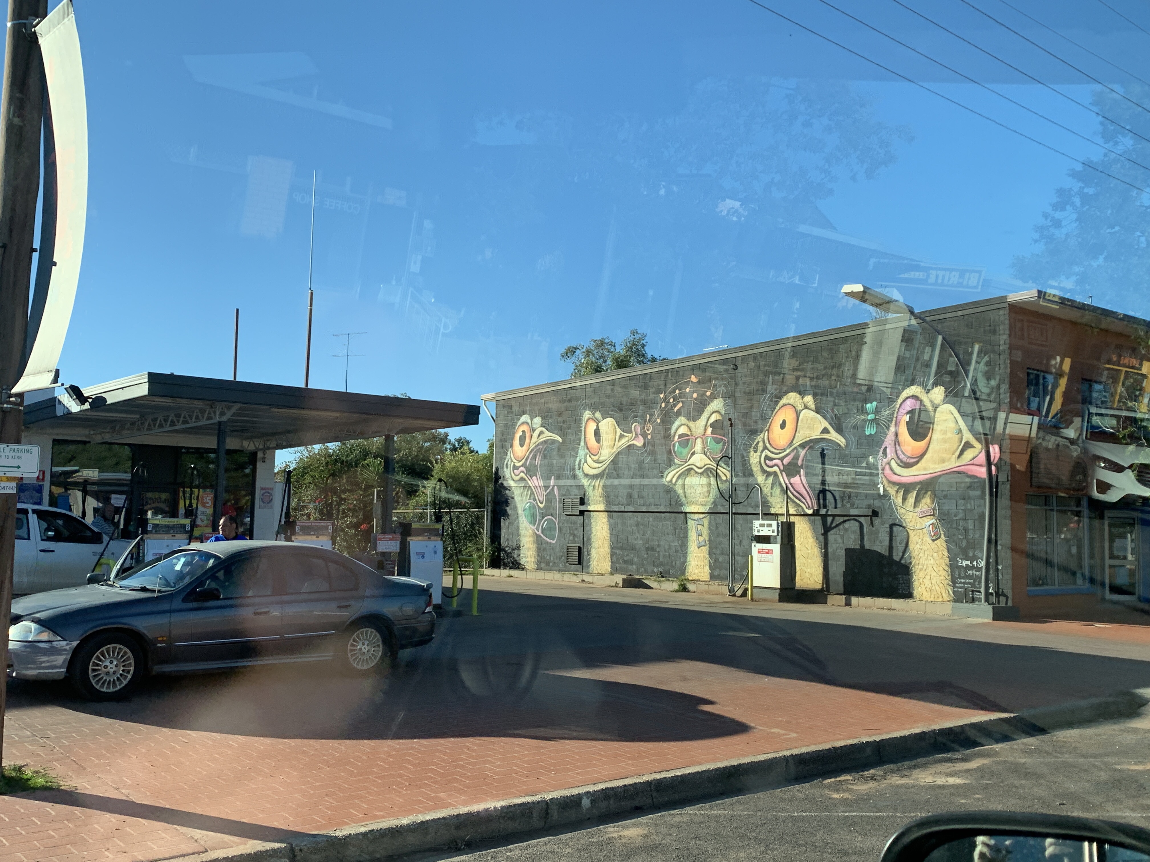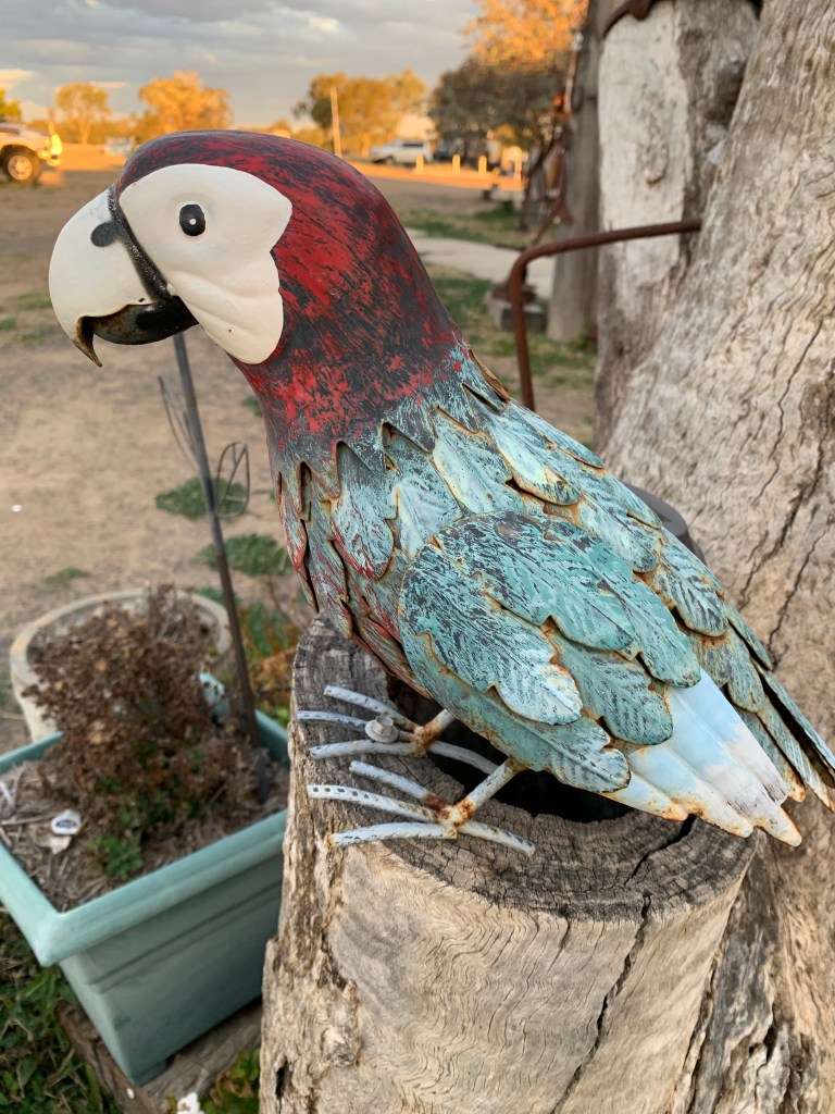 Scattered around town are galah sculptures made from old corrugated iron. They are fabulous.