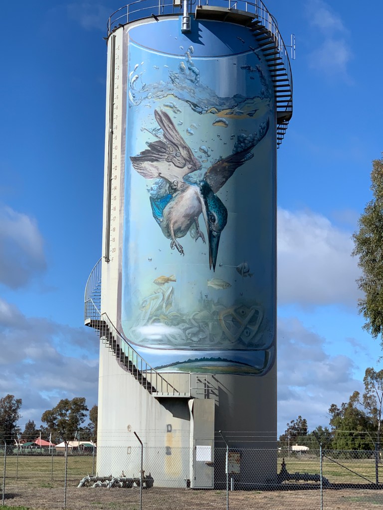 The water tower in Gulargambone is painted with a gorgeous painting of a Kingfisher. We went for a drive along the small main street and I loved the colourfully painted shop fronts. Gulargambone has a lovely big park next to the river.