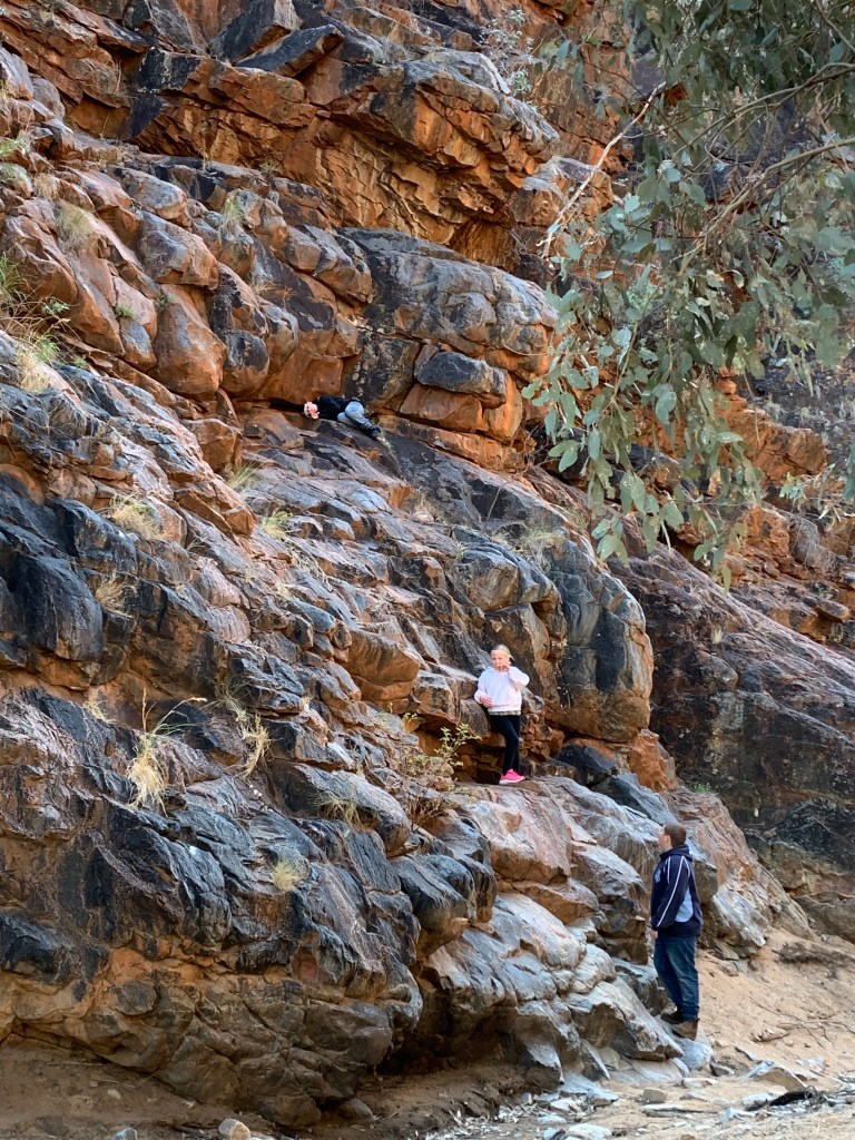 It was a chilly morning and the first part of our ride around was in the shade so it was quite cool. The kids were very excited when we arrived at a part where you could touch the rock. Actually touch it!