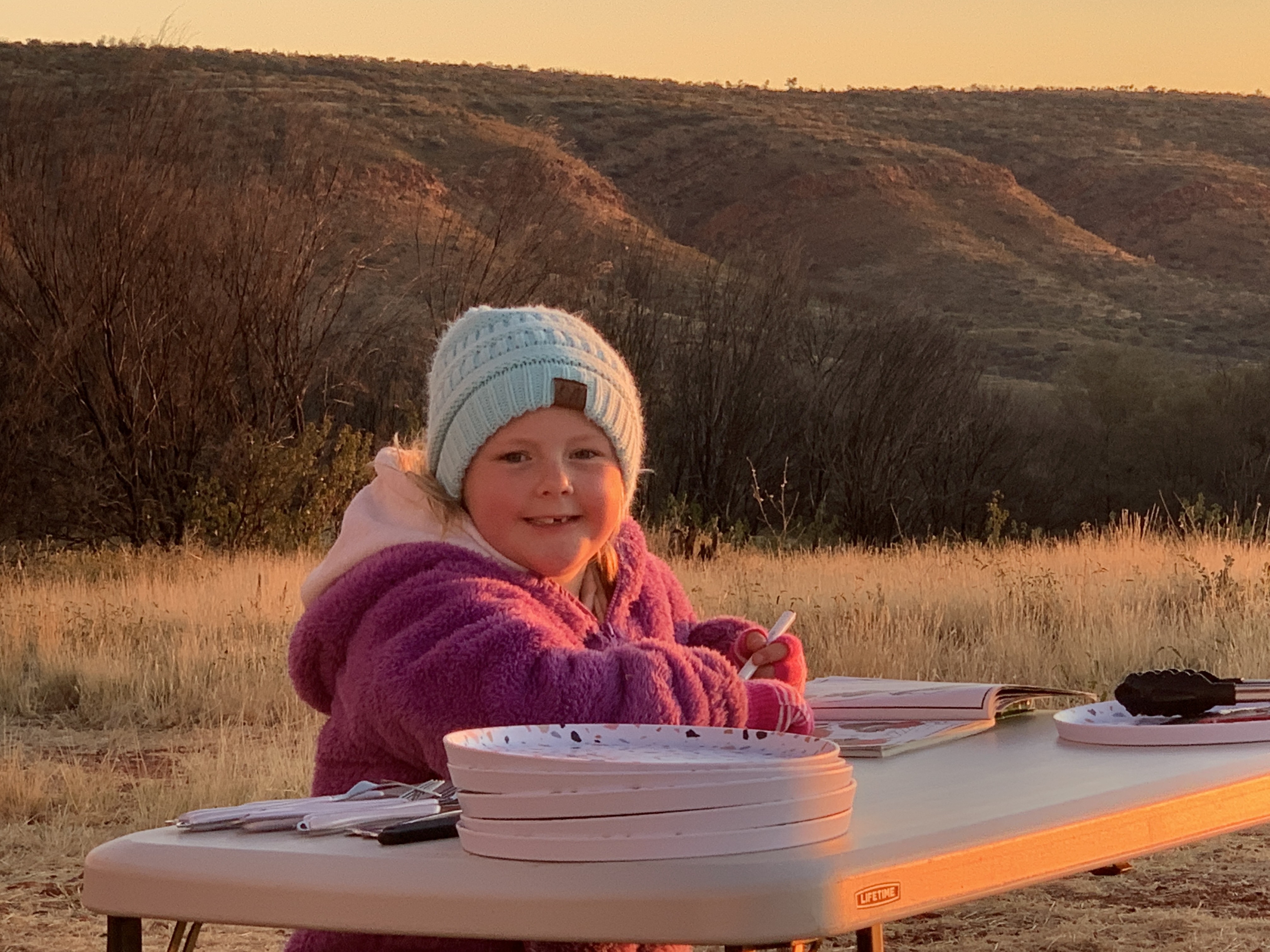 The Sunset Viewing car park is in the perfect spot to get the best views of the rock as the sun sets and it pays to get there early as the spots fill up quickly. We found a great spot with room in front of the car for our chairs and table. We had a lovely man and his two girls from Sydney on one side and another lovely man and his two girls also from Sydney on the other side.