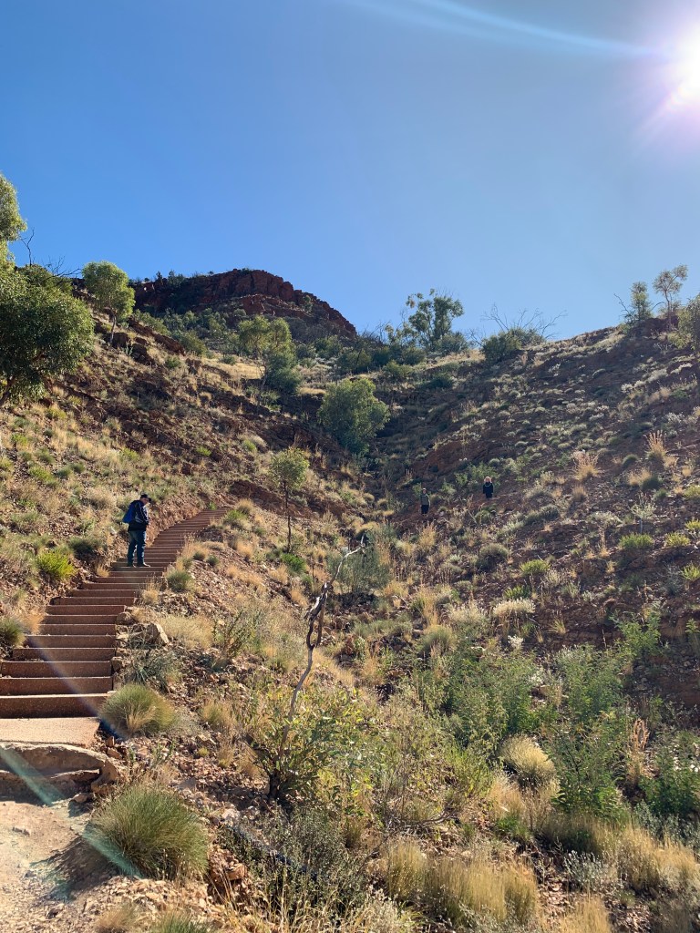 We enjoyed a well-earned 15 minute break at Mala Car park where there are lots of benches to sit on. Mala Car Park is the spot where people used to start their climb of the rock when it was allowed. Looking up at the track up the rock I really don’t see the attraction of climbing. It is very steep and looks so dangerous.