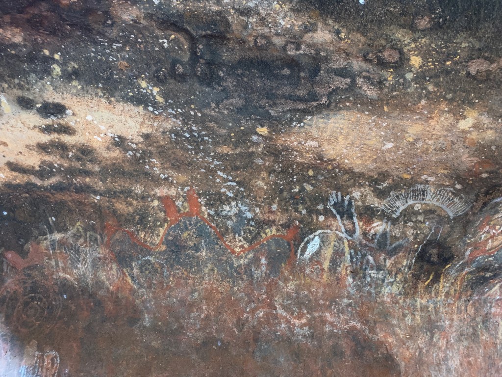 Further on we came to Mutitjulu Cave and checked out the old rock paintings. This would have been a place where people camped and used the rock paintings to tell stories. These stories are still being taught to young people to this day.