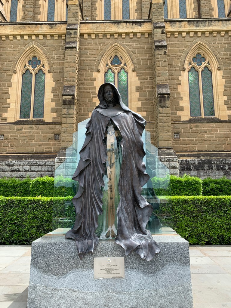 The Stations of the Cross are all paintings by Italian painter CavallariLooking towards the main altarLeft aisle with the Stations of the CrossAustralian timber has been used for all the intricate ceilingsLooking towards the choirThe Main AltarThe choir and OrganStatue of St Mary McKillopSacred Heart Cathedral, Bendigo