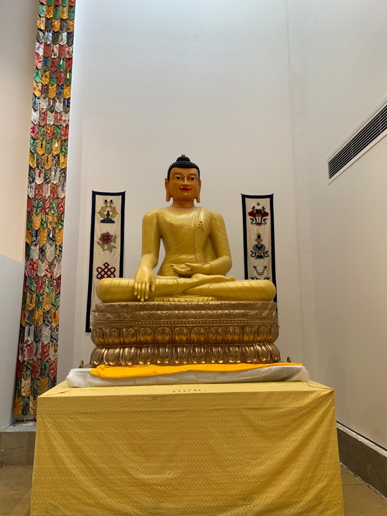 Then you walk inside and it is HUGE. A big open hall with huge smaller shrines around the outside. One thing strikes you immediately, it’s so colourful. Colour is everywhere. The tall pillars are covered in colourful silk banners in the five colours that represent the five Wisdom Buddhas, Blue, White, Red, Green and Yellow. Each colour is associated with an element and a Buddha. For example Yellow symbolises rootedness and renunciation, the element of earth. Buddha Ratnasambhava is associated with yellow. Meditation on humility and equanimity transforms pride into wisdom.