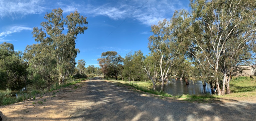 Now Australia has been in the grips of a La Niña event and there had been floods all over the place. Even in places that don’t usually flood. Roads everywhere were in a shocking state and it would take months/years to repair all the potholes. Deciding on a route to Ballarat was going to be tricky. Consulting the NSW Live Traffic app and the VicTraffic app gave us a route from Griffith southwards through Darlington Point, Jerilderee, Tocumwal, Shepparton, Bendigo to Ballarat. It looked like all the roads were open but we were expecting to see roadworks.