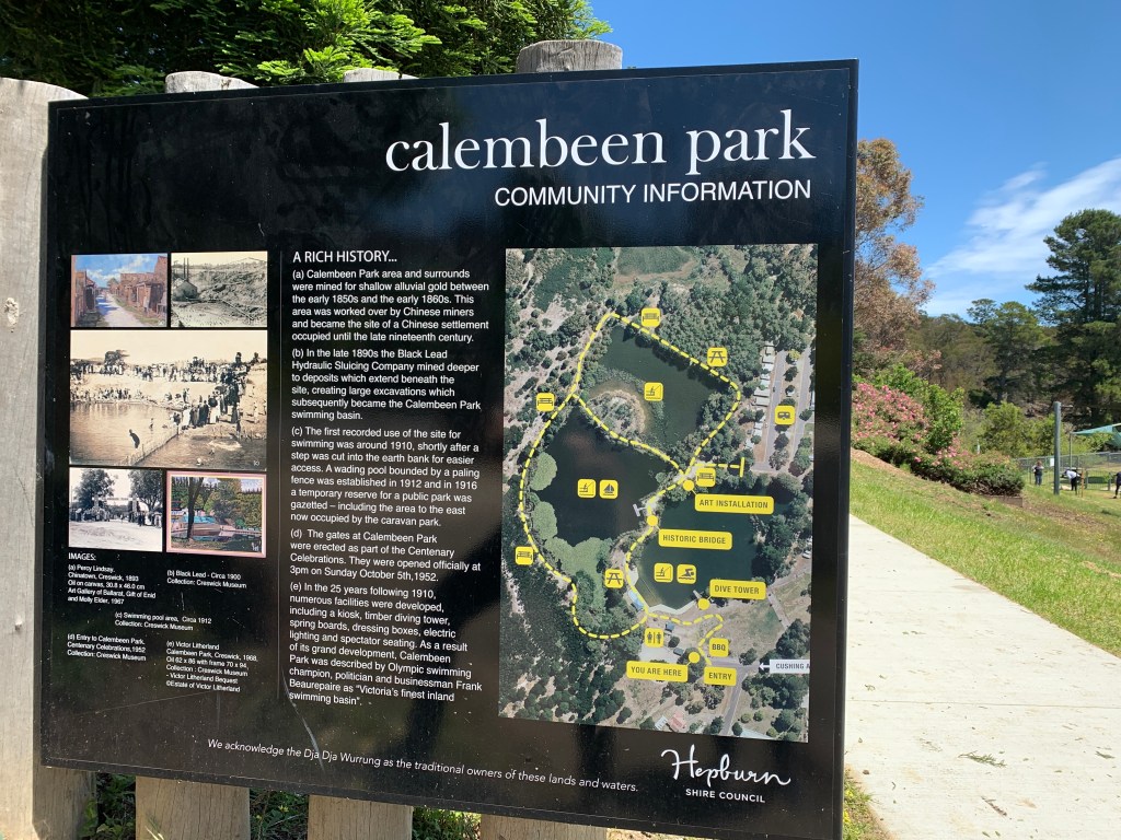 The next morning we headed to Ballarat. We had a brief lunch stop at Creswick where we pulled into Calambeen Park. Calambeen park is home to a large man-made swim ming hole. It even has diving boards!