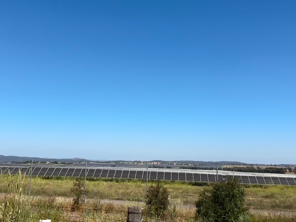 Only about 7 km out of town on the Goolma Road you come across a huge solar farm. It covers some 316 hectares of once grazing land. It was constructed in 2019 and supplies some 200MW. That’s enough to power 72,500 homes. Wellington Solar is adjacent to another lightsourceBP project, funnily enough, called Wellington North Solar. Wellington North solar produces 425MW. Enough to supply 152,500 homes.