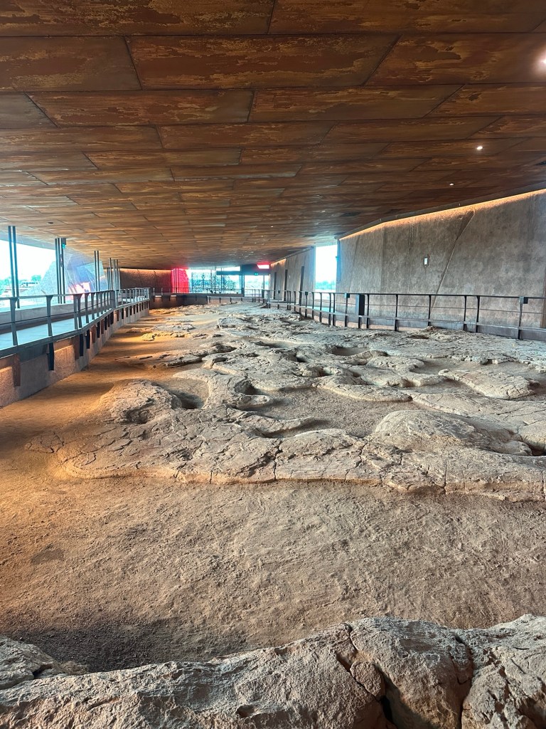 The memorial contains 3449 hanging timbers that give the illusion of a tree canopy and they were made from recycled telephone poles. You can still see the root ball of the original tree through the glass panels on the floor. It is lit up at night. I like the way the hanging timbers clink together when the wind blows through. It’s sort of like rustling leaves.