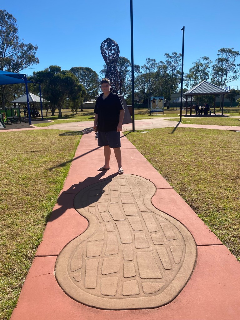 Arriving in Kingaroy, the hometown of Queensland’s most famous premier, Joe Bjelke-Petersen, we went directly to the lovely little Lions Park. The community made possible the construction of the Big Peanut. It’s one of those large sculptures made from scrap metal, very clever. Of course we had to take pictures at the peanut photo screen.