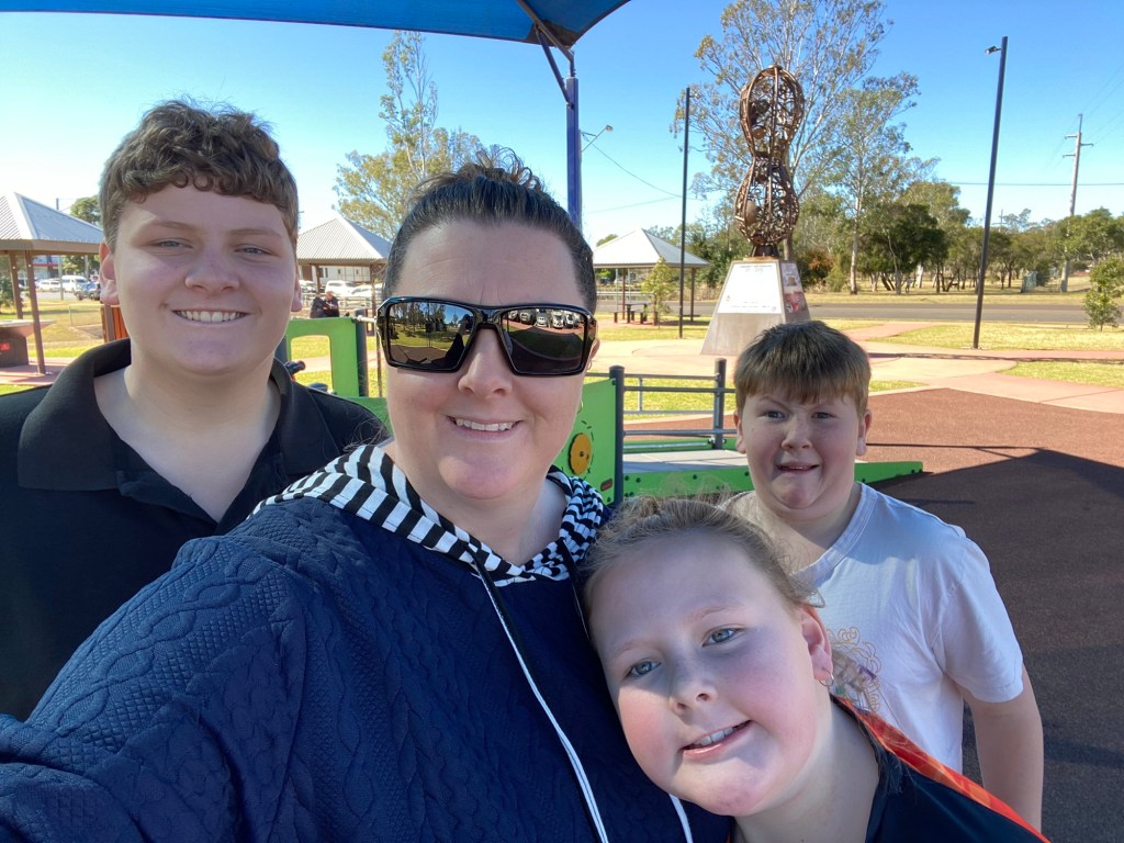 We had a wonderful visit with Carol & David. It was hard to get away, we could have talked all morning! Carol had made scones and pikelets as she thought we were bringing Katie and the kids so she insisted we take them with us for the kids. On the way back to the caravan park we received a message to say KT and kids were at the Tourist Centre so we met them there. We finally left Dalby about 10.30am and headed towards Kingaroy.
