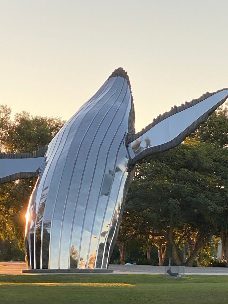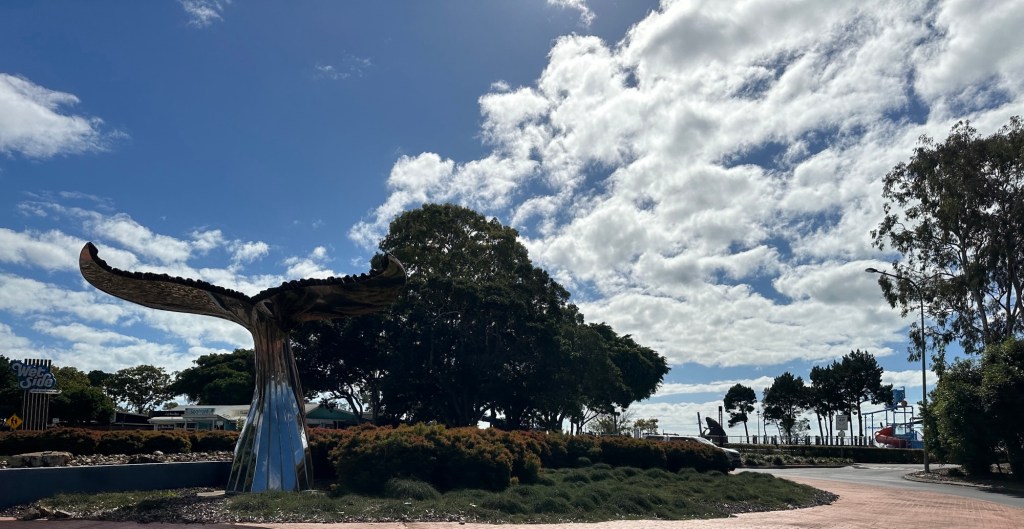 We stopped off to check out the boat harbour and admired the millions of dollars worth of boats. Harvey Bay is the whale watching capital of Australia and we found whale sculptures and lots of shops selling whale watching cruises.