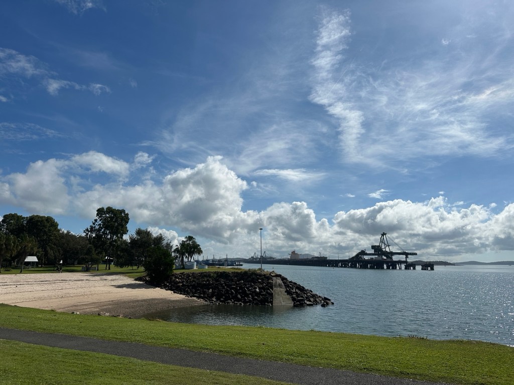 We drove down towards the boat harbour and found the Visitors Centre. The lady there recommended we drive around the boat harbour to the other side and we would be on a little spit of land between the boat harbour and the coal terminal with views across to the islands and the aluminium terminal.