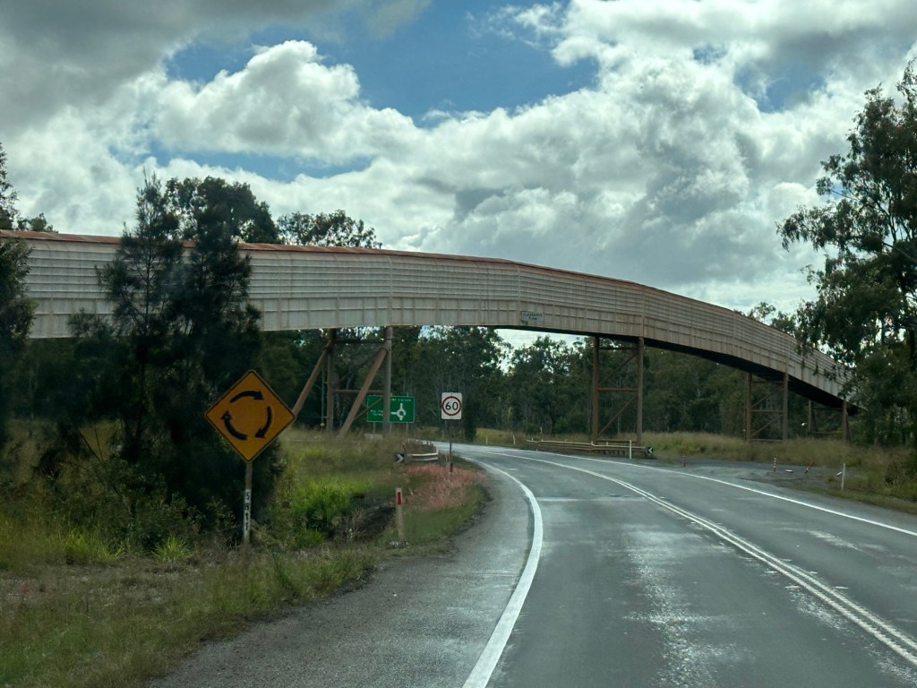 A little further on we passed the Rio Tinto alumina mine at Yarwun. The highway went under a conveyor belt bridge that takes 3 million tonnes of alumina to the terminal each year. Continuing northwards and at Mount Larson we rejoined the A1 Bruce Highway again.