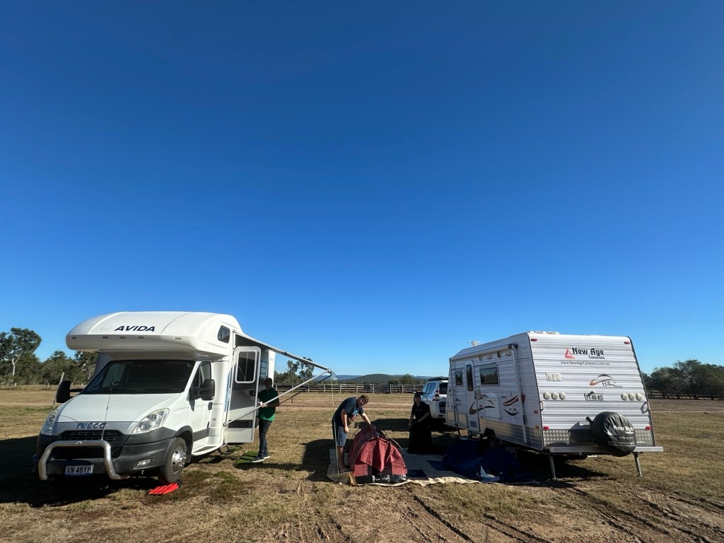 Camping is allowed at the Recreation Ground. It is unpowered but there is an amenities block with toilets and pay-as-you-go showers. $1 for 3 minutes. There are large areas of flat grass to park on and we found a spot away from other campers and quickly set up camp. All this and thye only aske for a $15 donation to be put in the honesty box. We are always happy to do this and support these tiny towns.