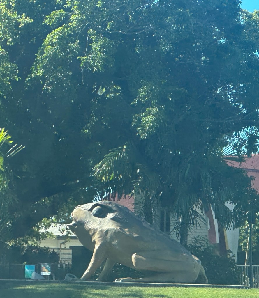During lunch we decided to head north and check out Mackay. As we drove out of Sarina we spied another big thing, The Big Cane Toad sitting on his pedestal in the middle park.