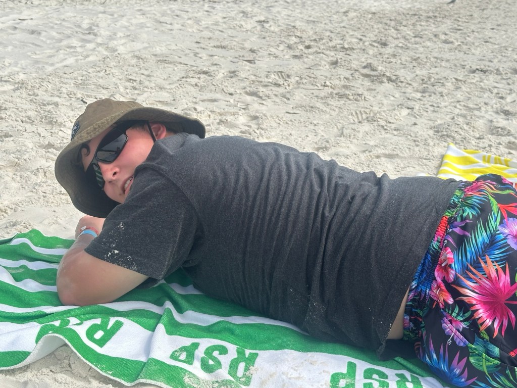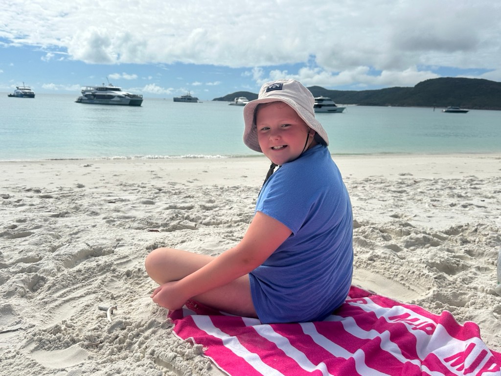 We wandered along the beach and found a spot to set up and promptly hit the water. OMG how to describe the water? It is crystal clear and, because the sand is 99% silica and so very white, the water colour is turquoise. The sun was out and that makes the water appear even bluer.
