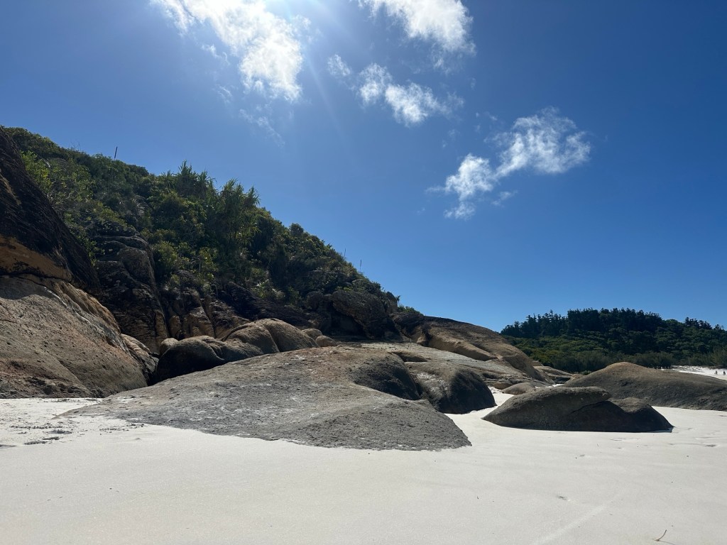 We walked past the ‘instagram’ tree. So called because it was one of three to be blown onto the beach during a cyclone and has become one of the most photographed trees in the islands. The whole of Whitsunday Island is a National Park and the NP service removed the other two trees but they’ve left this one behind on the beach. What do you think?