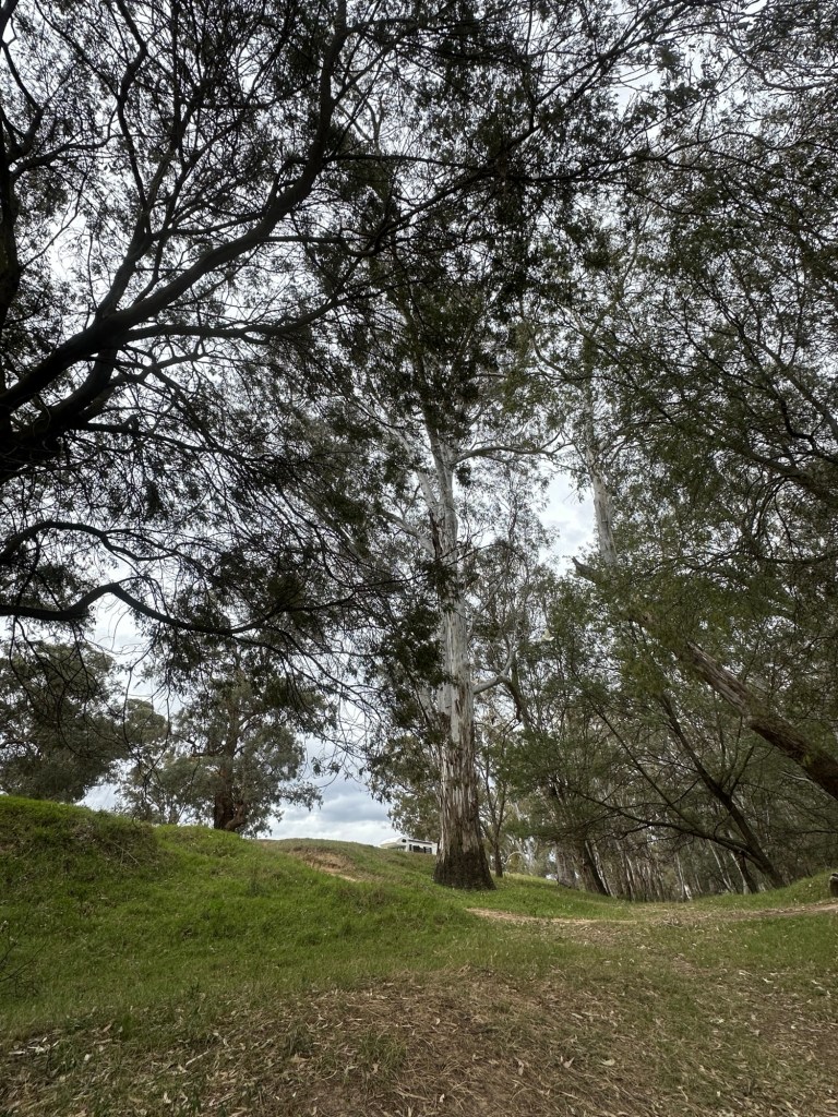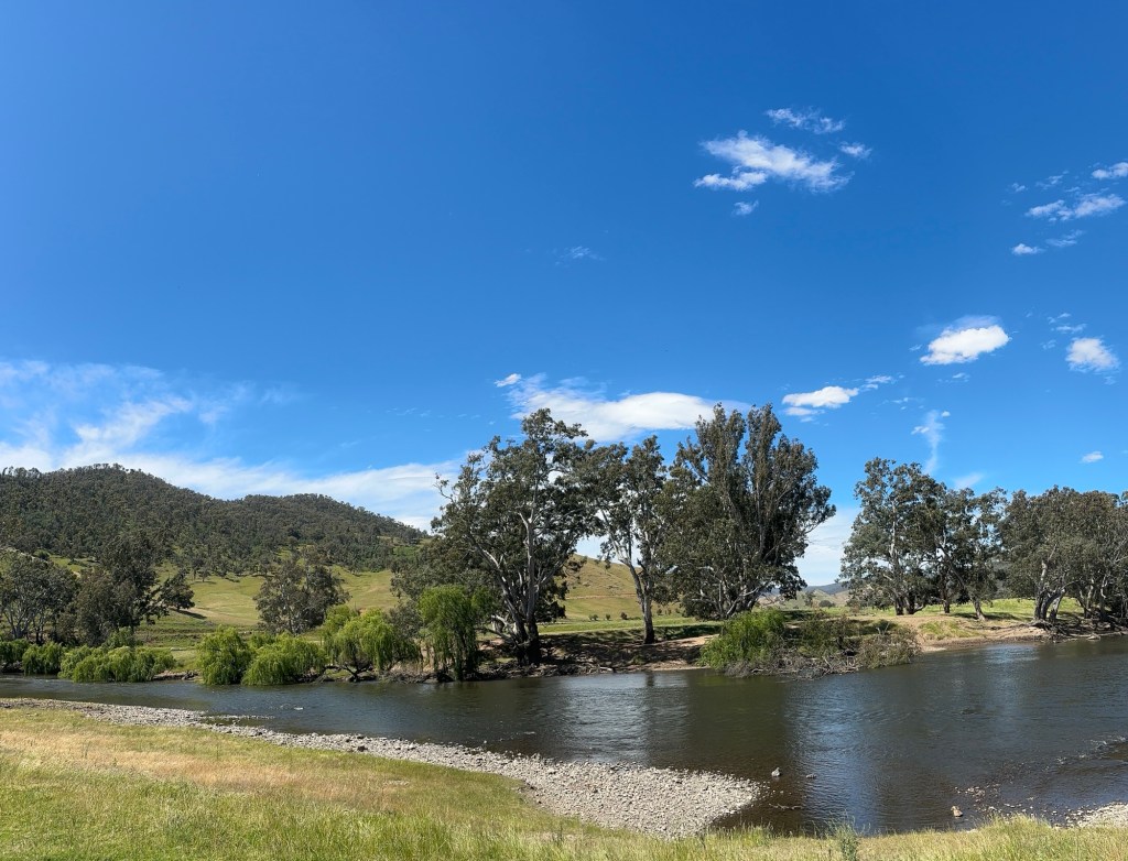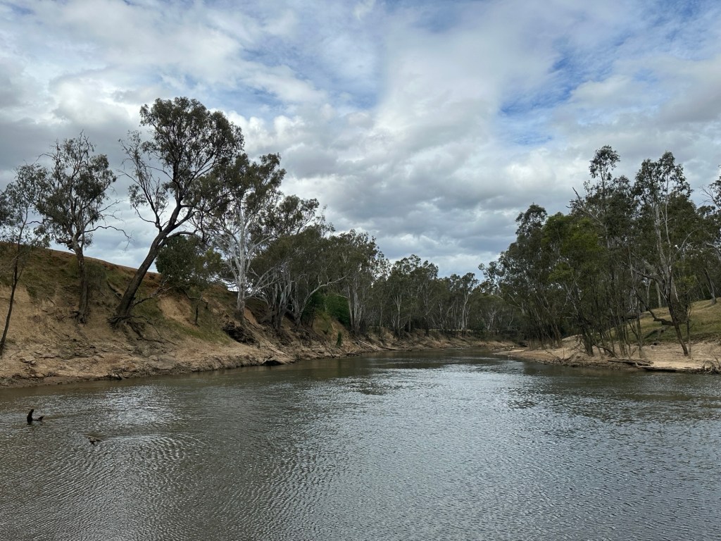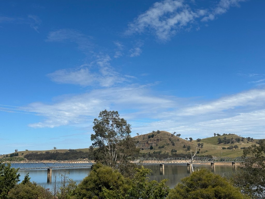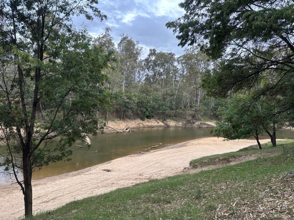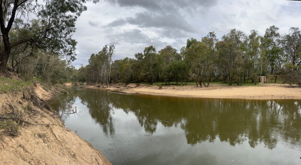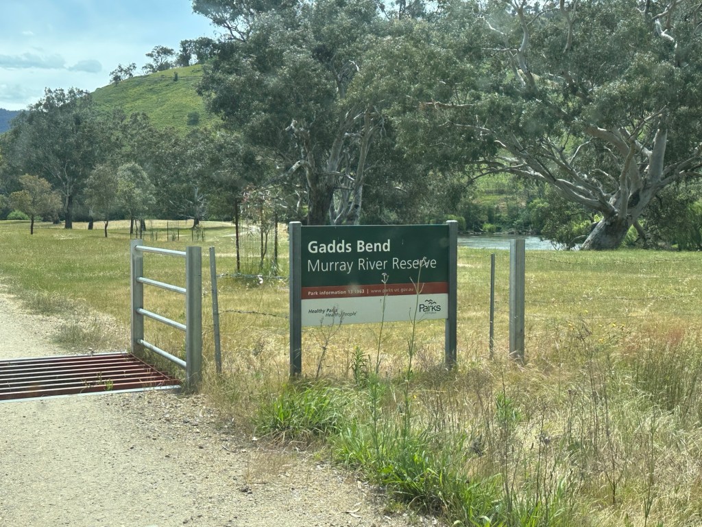 We found the spot at Murchison Reserve. Murchison Reserve consists of a couple of ovals with toilets and club buildings. On the back fence there is a cattle grid with a gate. If you go through that you are on the river bank. The Goulburn River has very tall river banks and from the top we could see the river below. There were quite a few tracks that led down to the river edge however they were definitely for 4WD’s and not 26’ motorhomes!