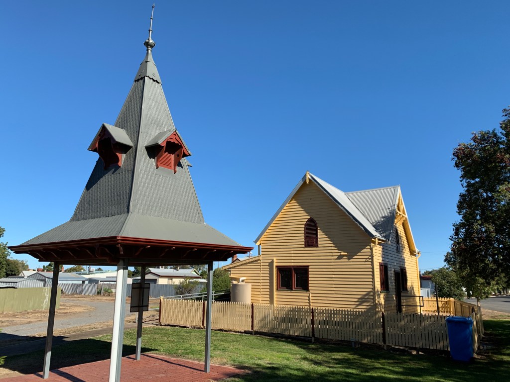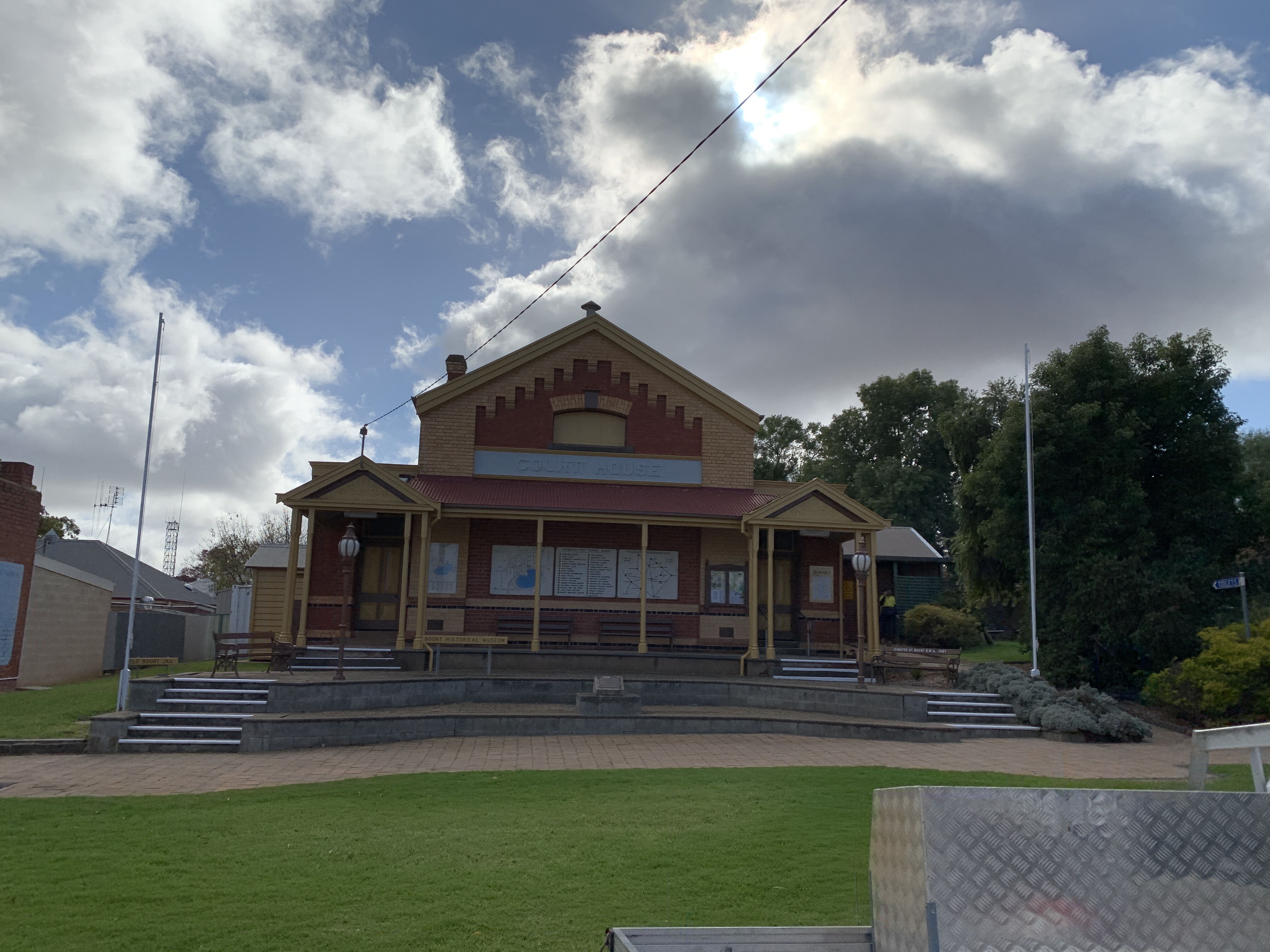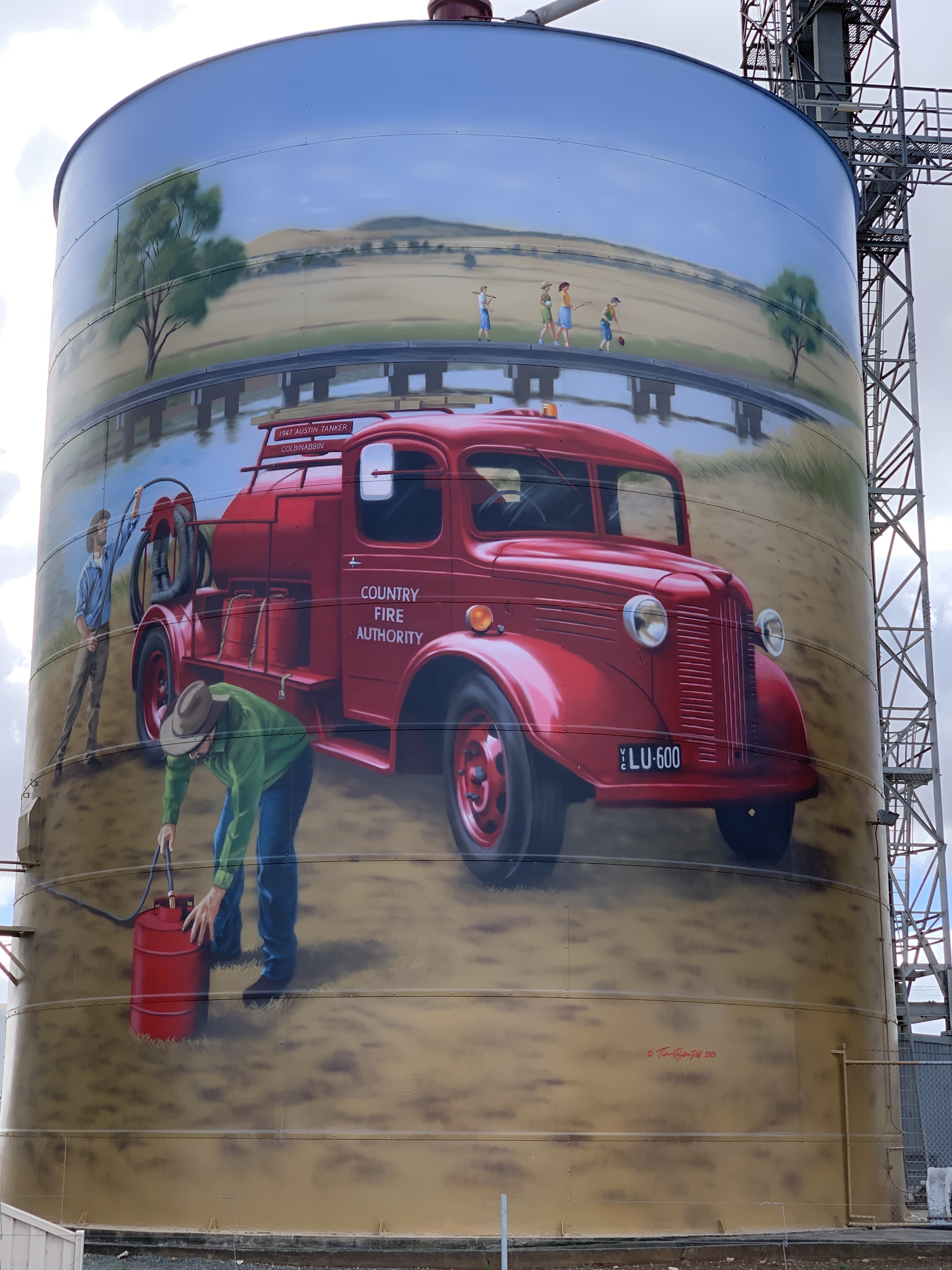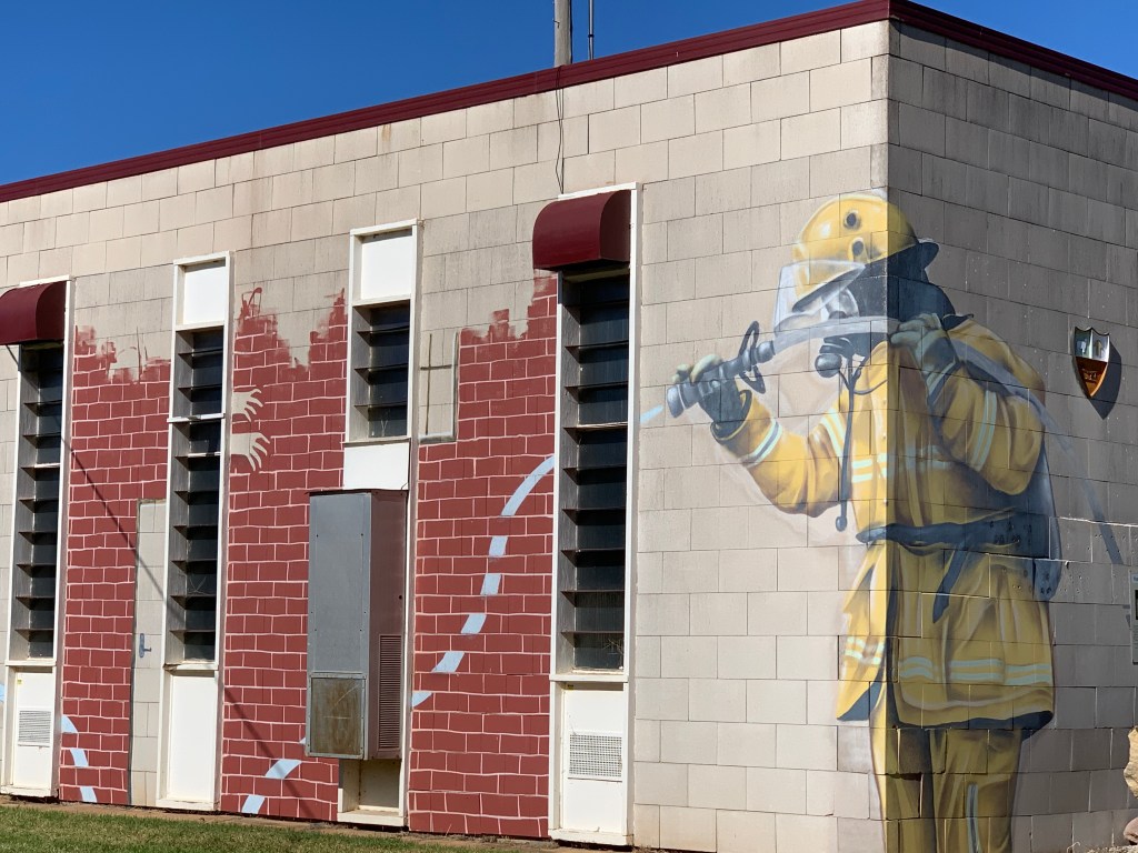 The town also has a mural of a firefighter on the old shire office building. This work was painted by Melbourne street artist Goodie.