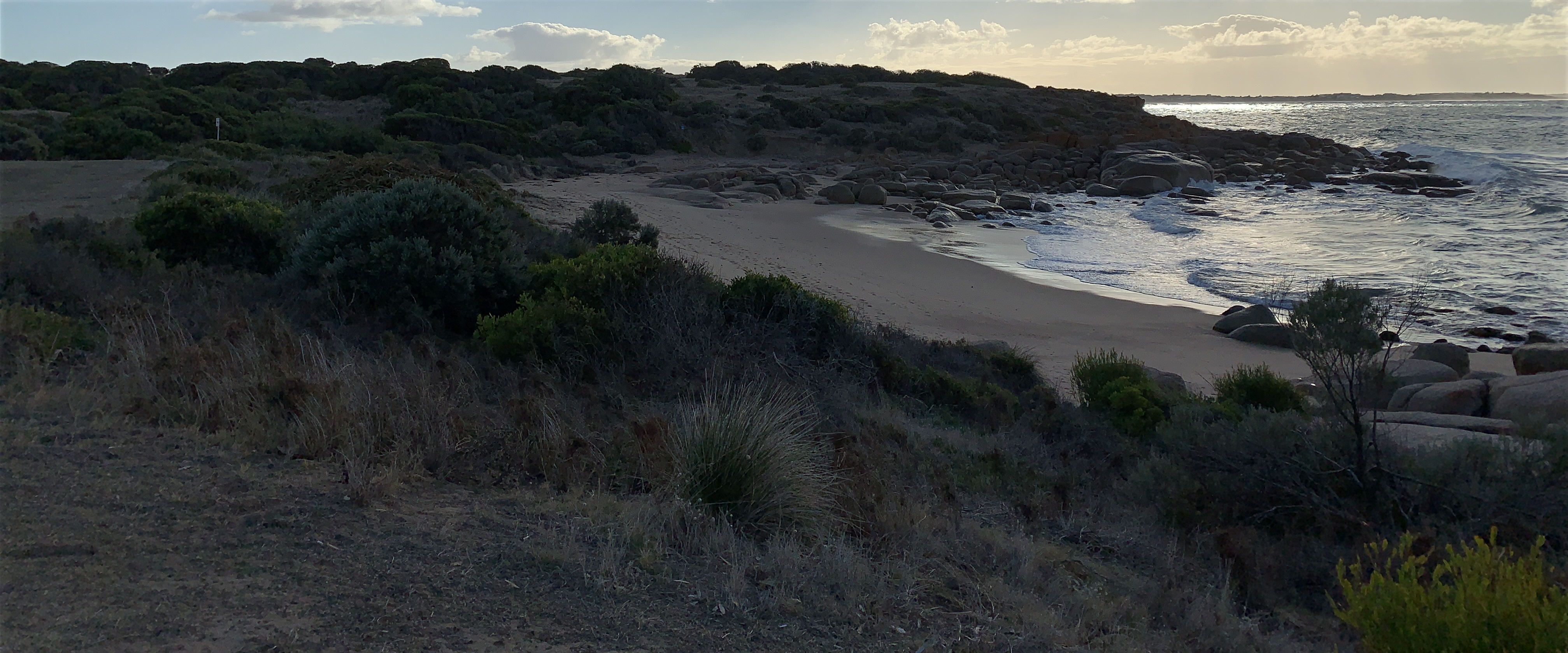 Granite Island is home to a colony of Little Penguins although a very bad storm a couple of years ago decimated the colony. Numbers are slowly growing again and you can do an evening tour to view these charming little creatures. Granite Island is 62 acres of huge granite boulders, many tinged with orange lichen. There are walking trails and a Sculpture Walk includes 10 sculptures. We saw one of those of a sea lion from the tram as we clopped along. It looked like a real sea lion lying on top of a boulder. Between May and October Granite Island is a popular spot for whale watching. Southern Right Whales are a common sighting. Camping is not permitted on the island nor are dogs allowed due to the Little Penguin colony.
