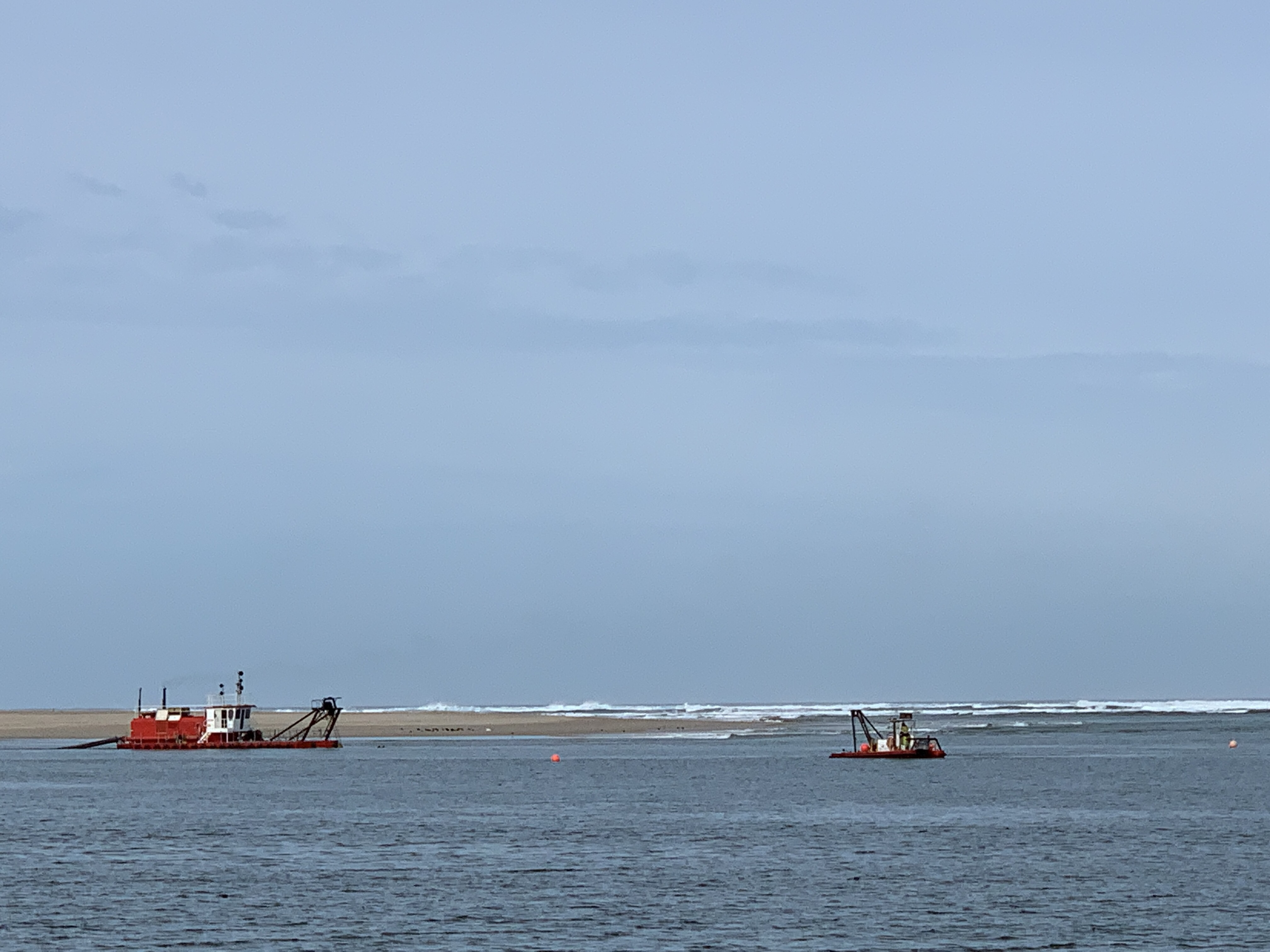 Once through the lock we cruised southwards alongside Hindmarsh Island on one side and the long thin peninsula separating us from the Southern Ocean until we reach the mouth of the Murray. The dredges were working dredging sand to keep the mouth of the Murray open to the sea.