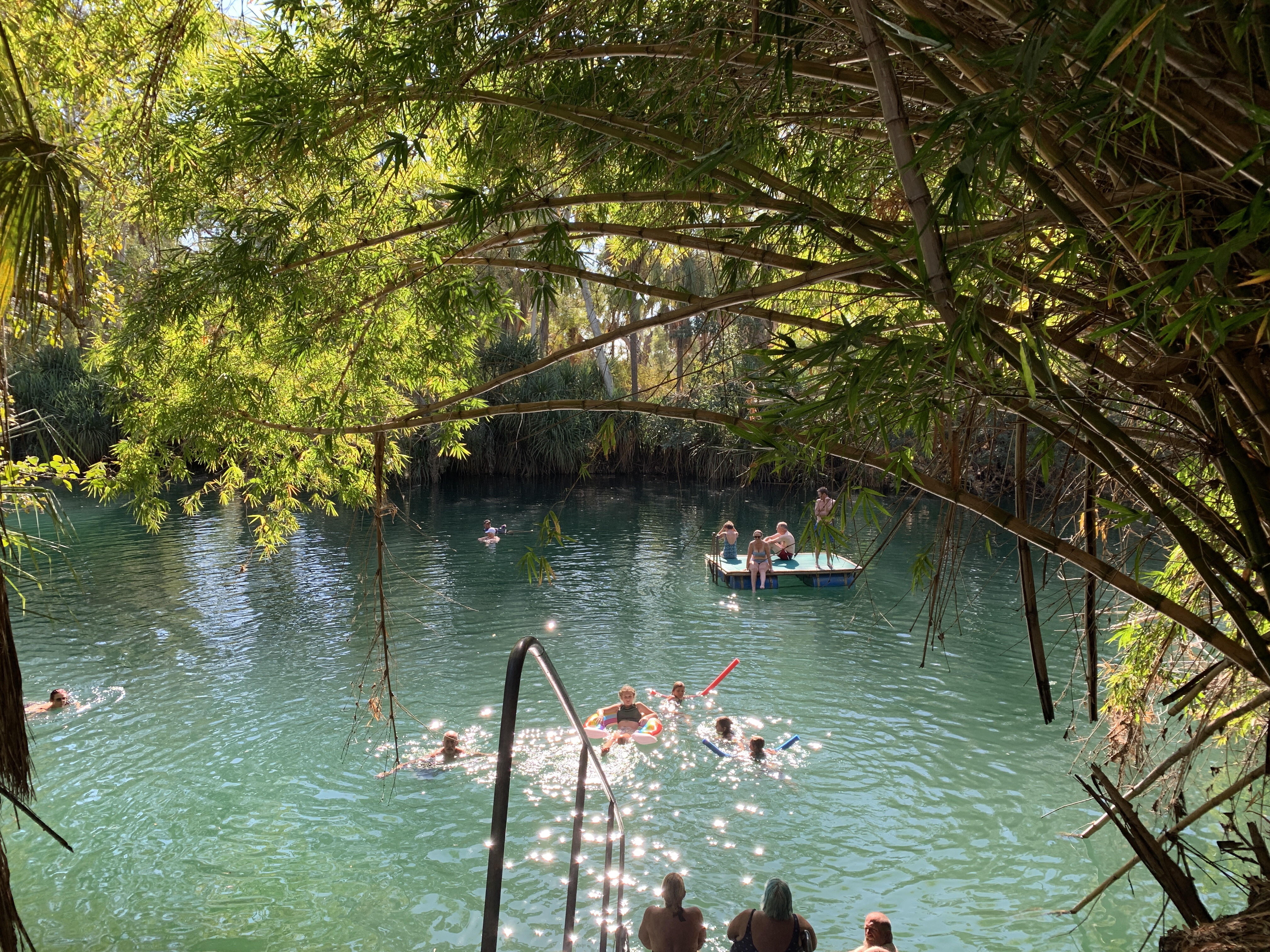 We needed gas so ran around to all the service stations in town, none of whom had any small bottles, only to end up back at the Emerald Cabin & Caravan Park where we stayed the other night. They fill gas bottles and we were able to get our filled for $18.