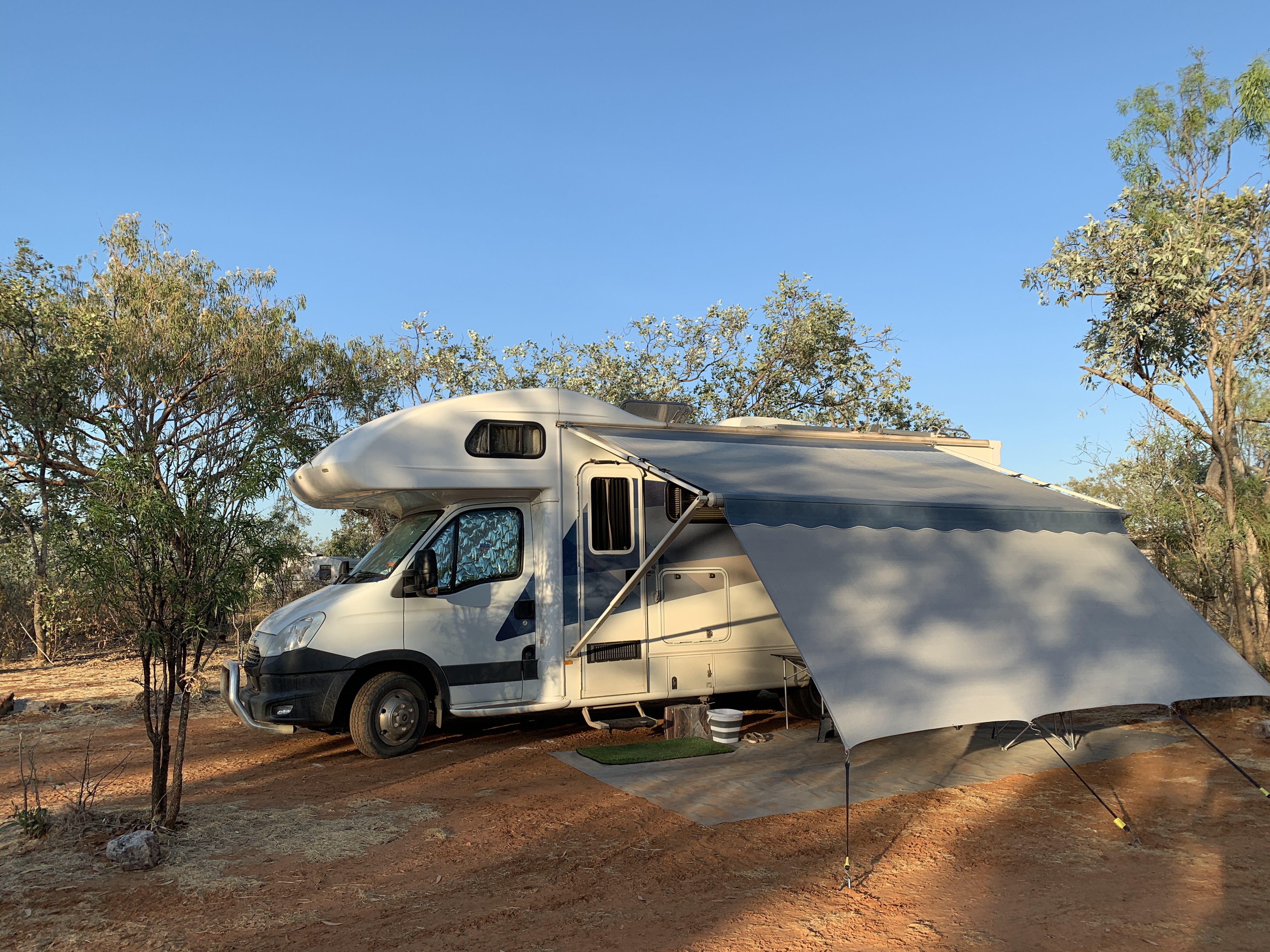 We finally headed out of town on the Springsure Road and found a great spot just past Gindie. It looks like it was an old gravel storage area but was nice and flat with a good lot of trees between us and the road. We set up as far back off the road as possible and Rich quickly got a lovely little fire going. I was so surprised that there was no one else already camped at that spot. Everywhere we’d been lately there was such a crowd. How peaceful to be just us. Shame there was no water view!