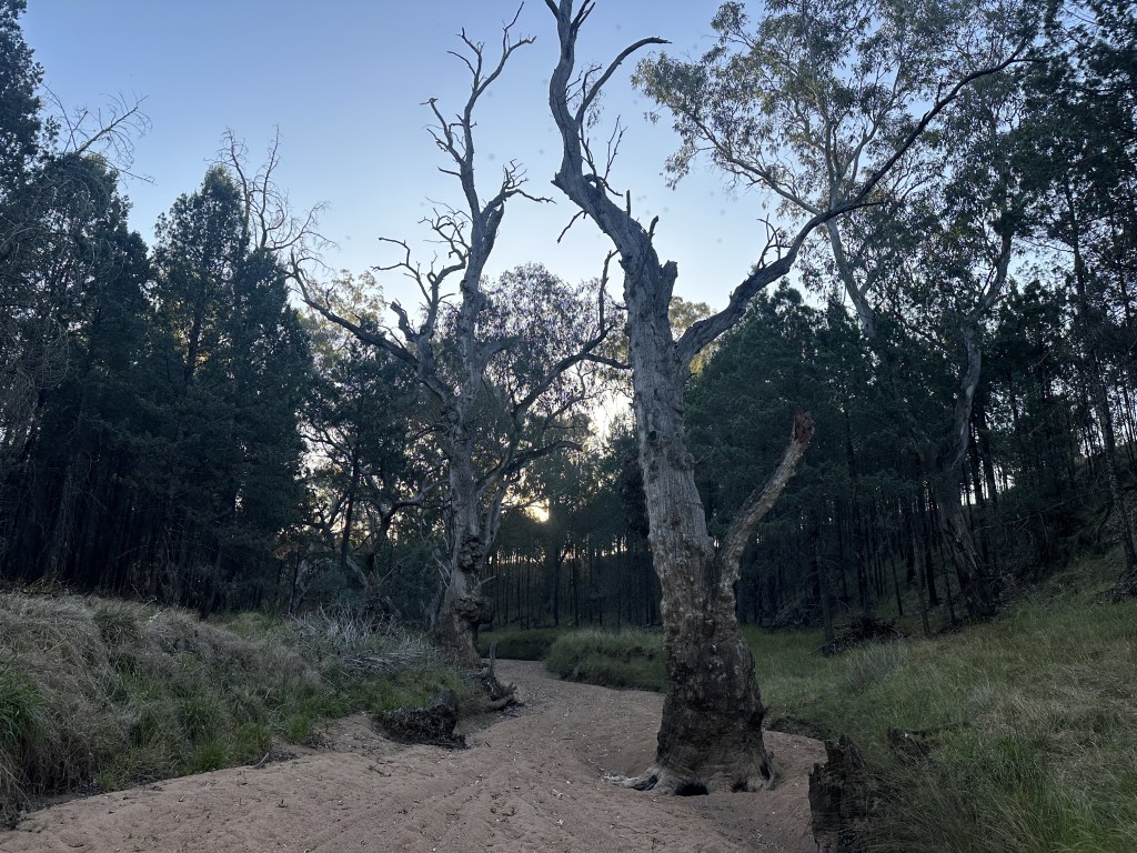 We set off late on a Friday afternoon after minding our 2 year old grandson for the day and headed eastwards towards Temora. We wanted a campsite with water views, somewhere we could have a fire and hopefully where there was no one else. Thanks to WikiCamps we found a perfect spot. Just north of the tiny town of Ariah Park is the Broken Dam Rest Area. This rest area is right next to the Mirrool Creek and if you are careful and take the track between the rest area and the bridge it takes you to a large, relatively flat, area situated on a huge bend in the creek. Sadly the creek was dry so no water views for us!