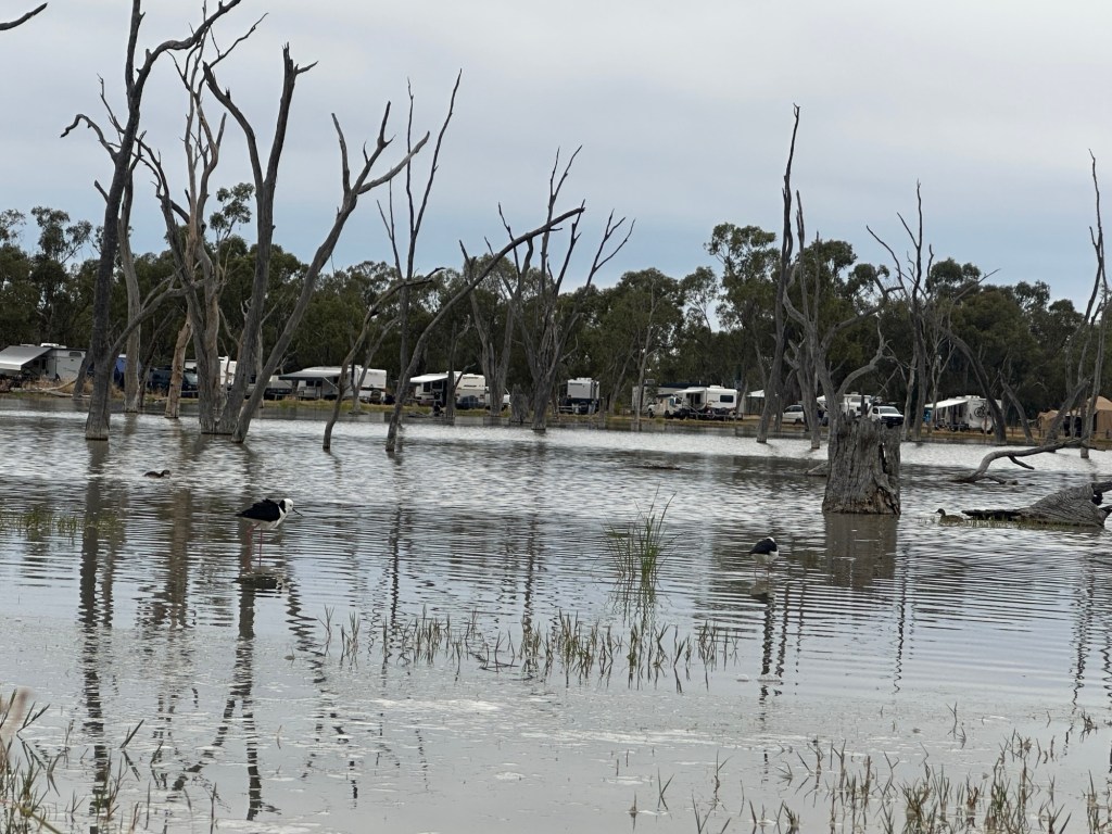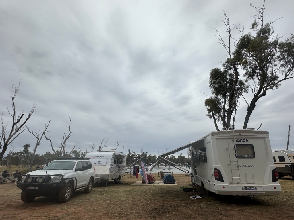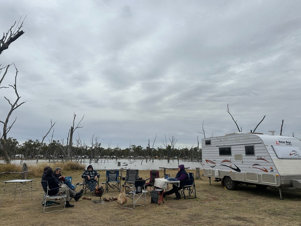 We checked in at reception, paid our $35 camping fee and drove around the wetlands until we found our friends, Catie & Robert, Andy & Jenny, Brian & Helen and Carol & David (who we’d called in to see in Dalby way back at the beginning of our trip)