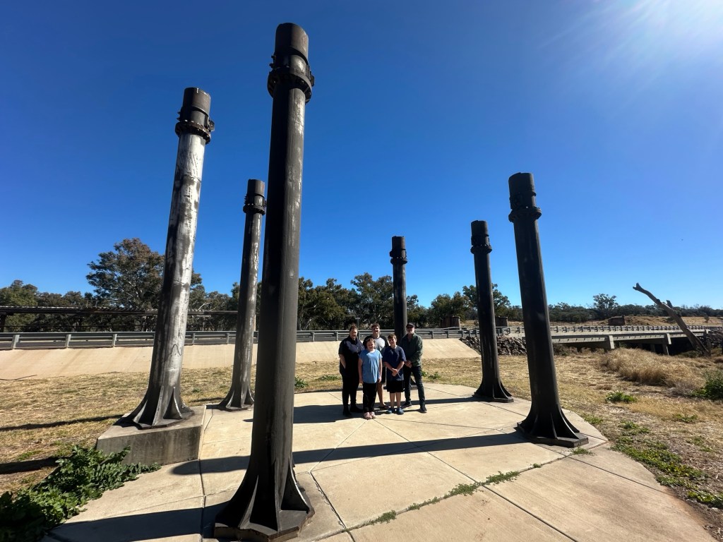 It was a gorgeous sunny day for our last day of travel on this amazing trip. We stopped for a lunch break in Hillston and Pa shouted everyone fish & chips for lunch from a great little cafe near the suspension bridge. We got take away and went to the lake and for a picnic.
