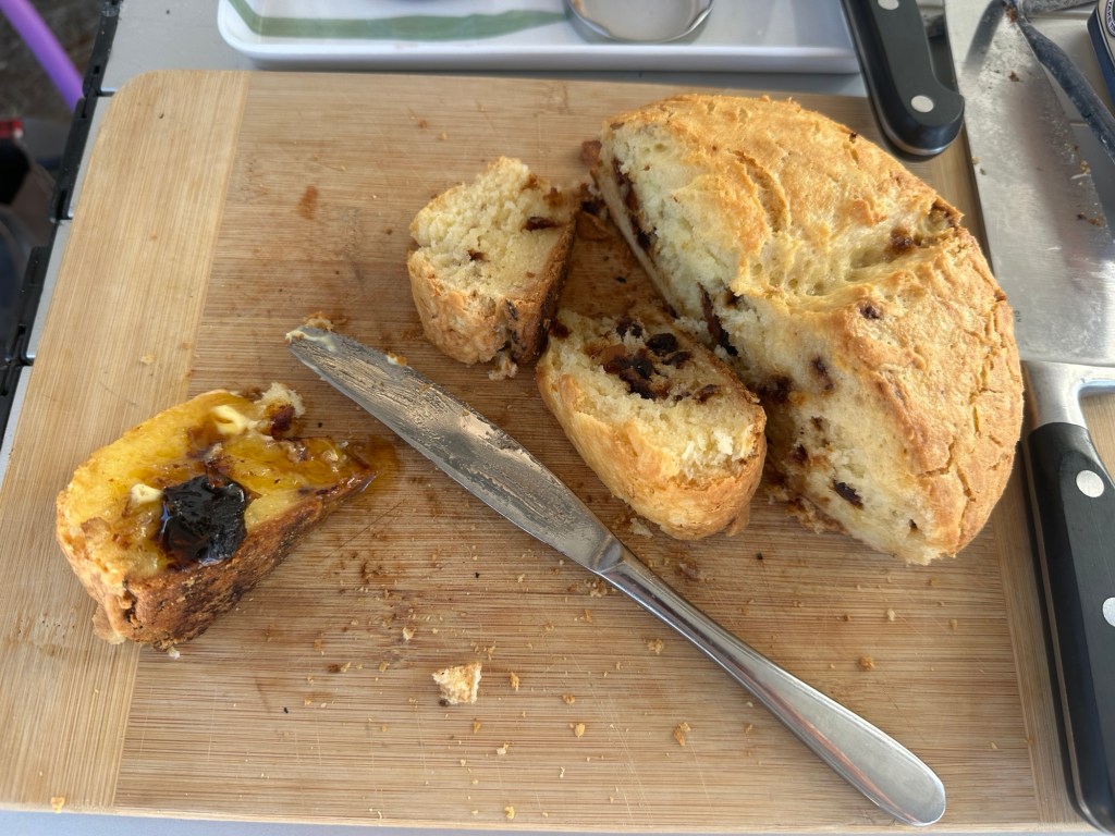 In the late morning I made a batch of scones in our oven. I forgot to put the chopped dates in the mix so I had to add them on top. They still tasted OK.