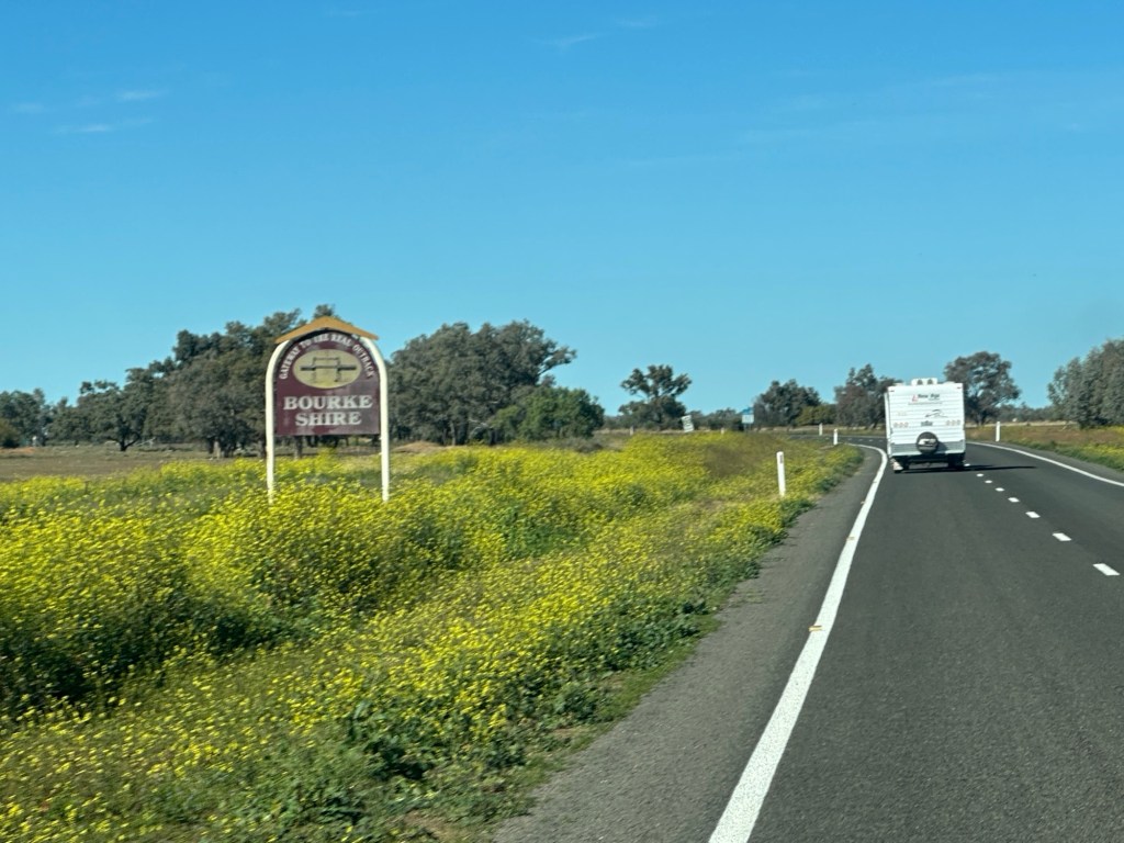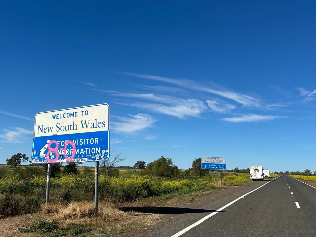 After leaving Cunnamulla we headed southwards. We had a quick stop at the NSW/Queensland border and we were very disappointed to find there was no rest area on the NSW side. There is one as you enter Queensland so people can hop out to take photos but there is none as you enter NSW. We just had to pull off the road. Poor form NSW.