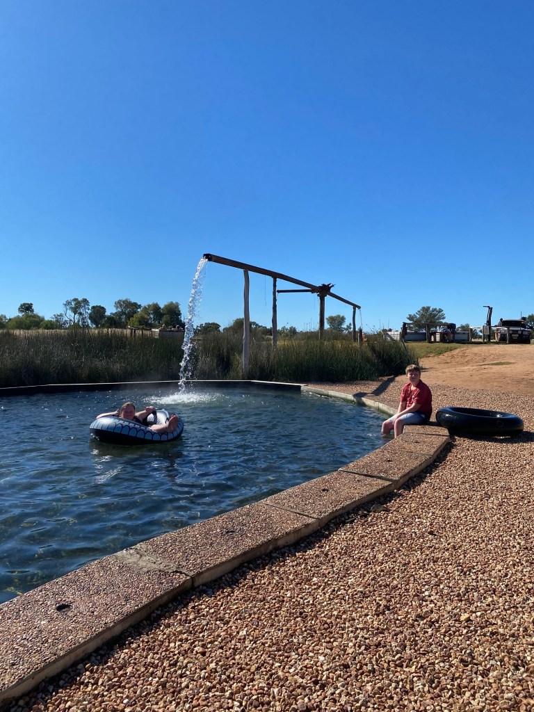 Soaking in the thermal pool was a must do for the day and we all enjoyed a therapeutic soak in the hot artesian water. The water comes up out of the ground at the Homestead at 68°, is fed into a huge dam with a heat exchanger in the bottom and then fed into a bore drain to the thermal pool. By the time it comes out at the pool it is 41°. The further you move away from the water entry the cooler the pool. It really is relaxing.